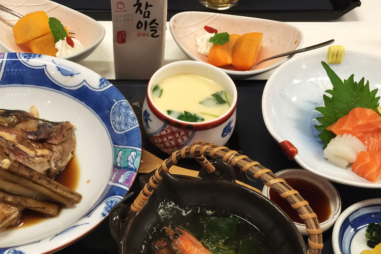 도고유린소(道後 友輪荘)는 오헨로 지도책에 나오는 숙소여선지 도고온천을 찾는 한국인은 로비에서도 식당에서도 보이질 않는다. 식당에서 저녁과 함께 친구가 챙겨운 참이슬로 소맥을 제조해서 마시는 맛도 특별하다.