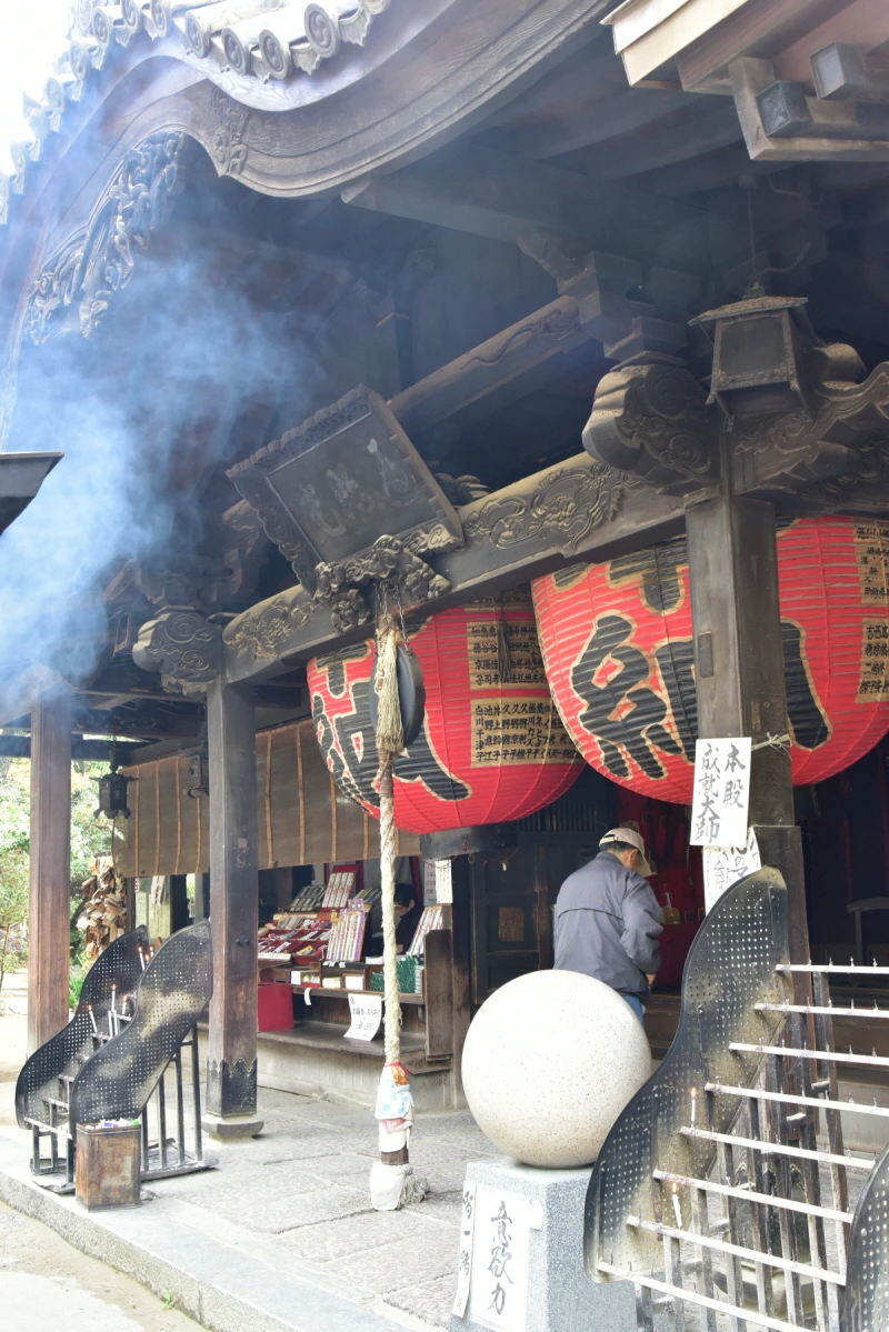 이곳에선 정식으로 본당, 대사당에 참배를 한다. 각각의 소원이 담긴 양초를 올리고, 향을 올리고, 100엔짜리 시주도 하고 공손히 손을 모으기도 한다. 한국과 마찬가지로 일본에서도 대입시험이 얼마남지 않았는지 순례자들, 관광객들이 절에 받치는 양초에는 학업성취가 대세다.