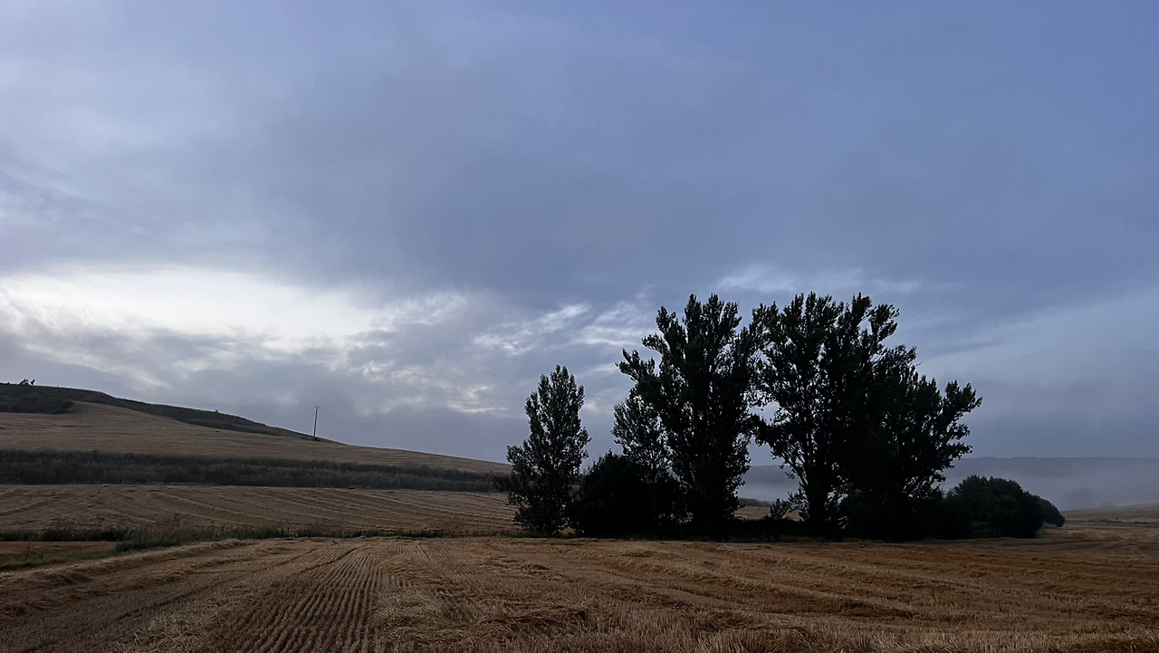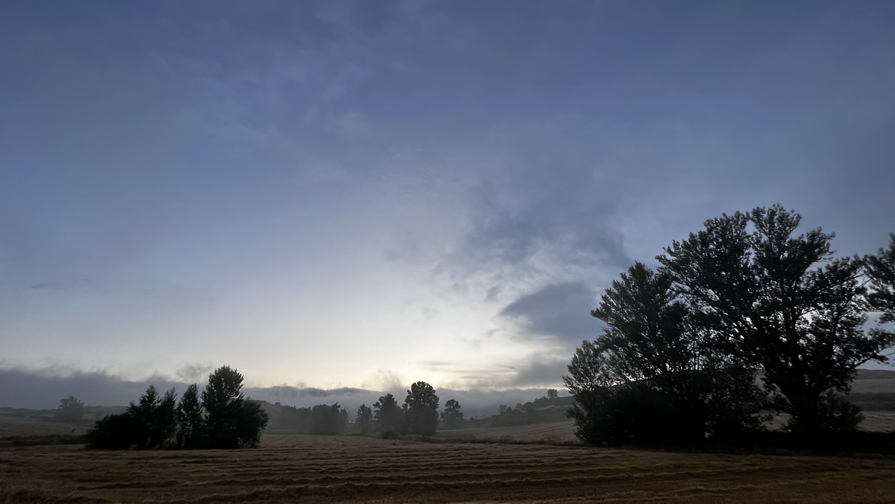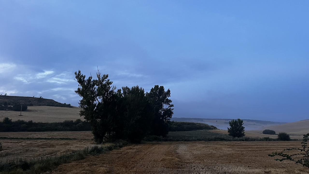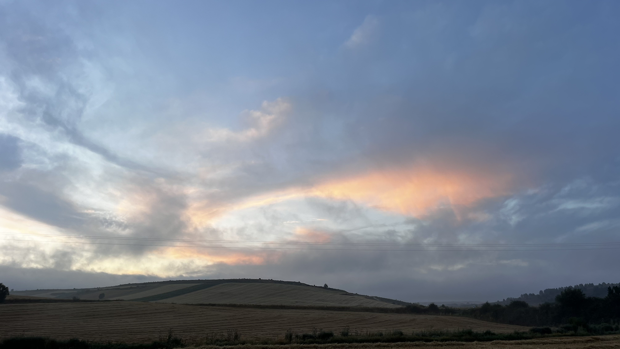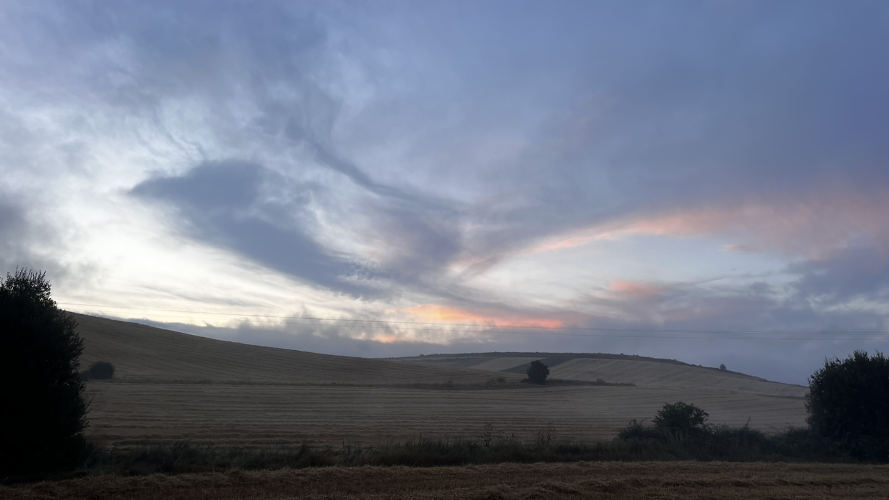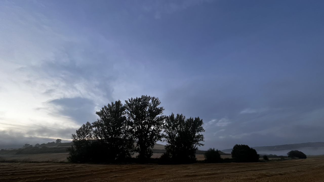 이 남자 나보다 과묵해서 할 수없이 통성명을 시도하니 이태리에서 온 스테파노라고 한다. 까미노에서 몇번 마주쳤을 때는 독일 남자일거야 생각했는데 의외로 이탈리아노란다. 같이 걸으니 랜턴도 둘로 더 밝아지고 길잃을 염려도 없어서 좋다고 한다. 나도 물론 산길을 둘이 걸으니 든든했지만 여명이 밝아오는 시점에서 하늘이 범상치 않길래 나는 천천히 갈테니 먼저 가라고 하고선 스마트폰일망정 사진 삼매경에 빠졌다.