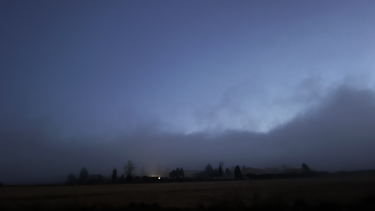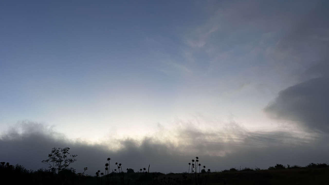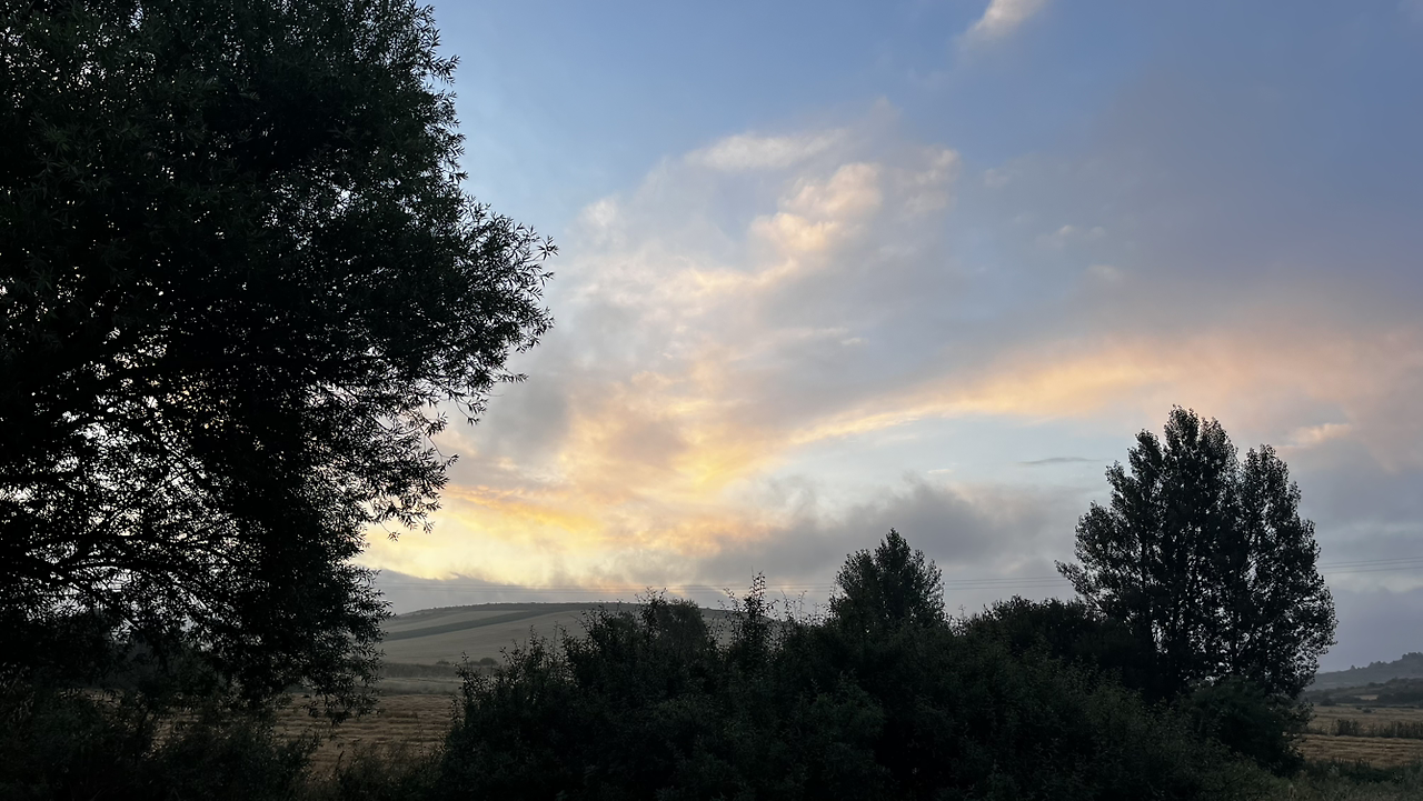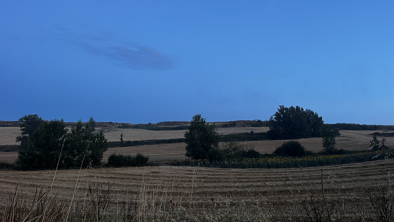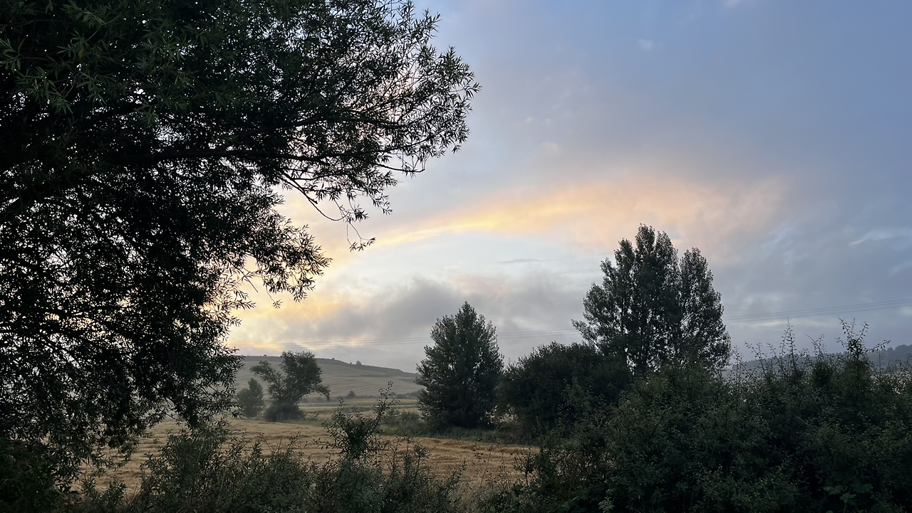 이 남자 나보다 과묵해서 할 수없이 통성명을 시도하니 이태리에서 온 스테파노라고 한다. 까미노에서 몇번 마주쳤을 때는 독일 남자일거야 생각했는데 의외로 이탈리아노란다. 같이 걸으니 랜턴도 둘로 더 밝아지고 길잃을 염려도 없어서 좋다고 한다. 나도 물론 산길을 둘이 걸으니 든든했지만 여명이 밝아오는 시점에서 하늘이 범상치 않길래 나는 천천히 갈테니 먼저 가라고 하고선 스마트폰일망정 사진 삼매경에 빠졌다.