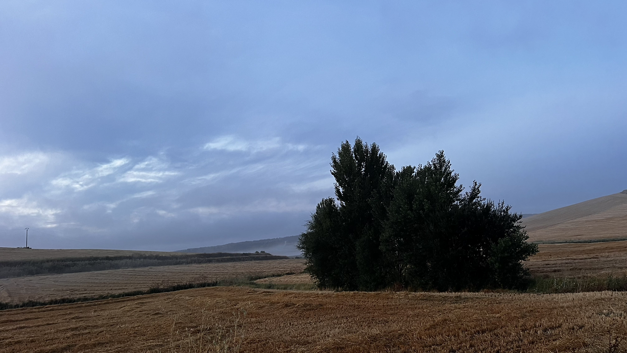5:50 숙소를 나서니 어젯밤 비로 공기가 상쾌하다못해 쌀쌀함마저 느껴진다. 겉옷을 꺼내입을 정도는 아니어서 바로 작은 마을을 빠져나가는데 왼쪽 숲길이다. 까미노는 숲길이라도 대체로 도로폭이 넓고 숲이 우거지진 않아서 제주 곶자왈처럼 혼자 들어갔을 때 무서운 느낌은 없는 편이다.