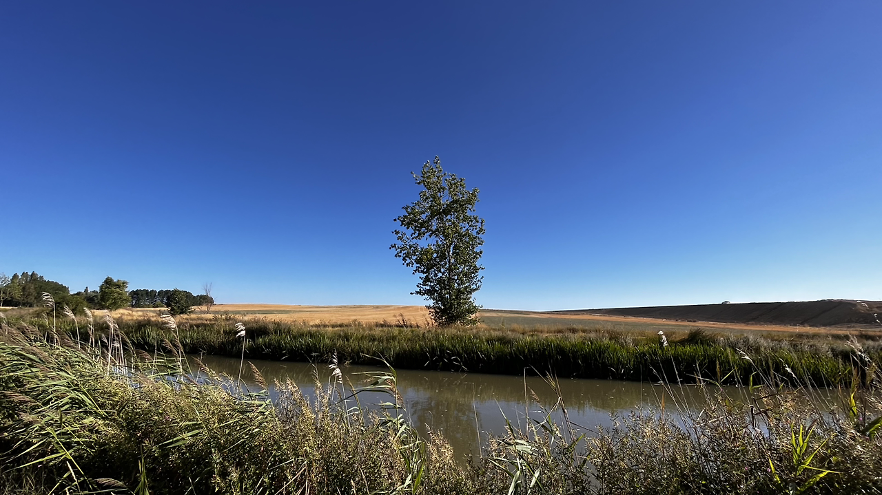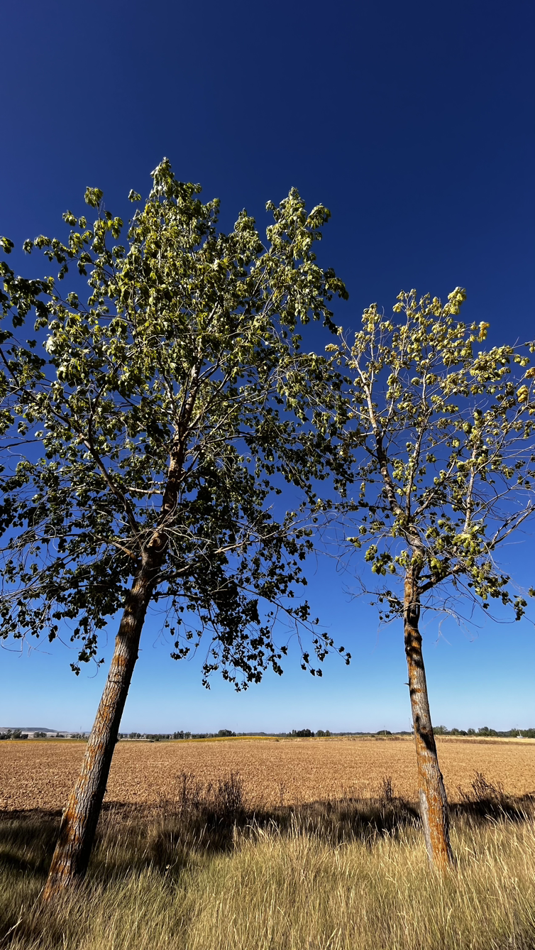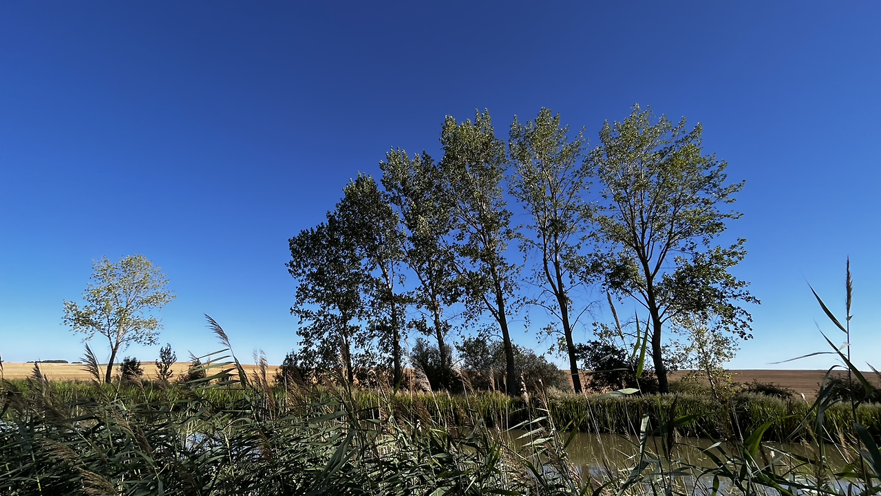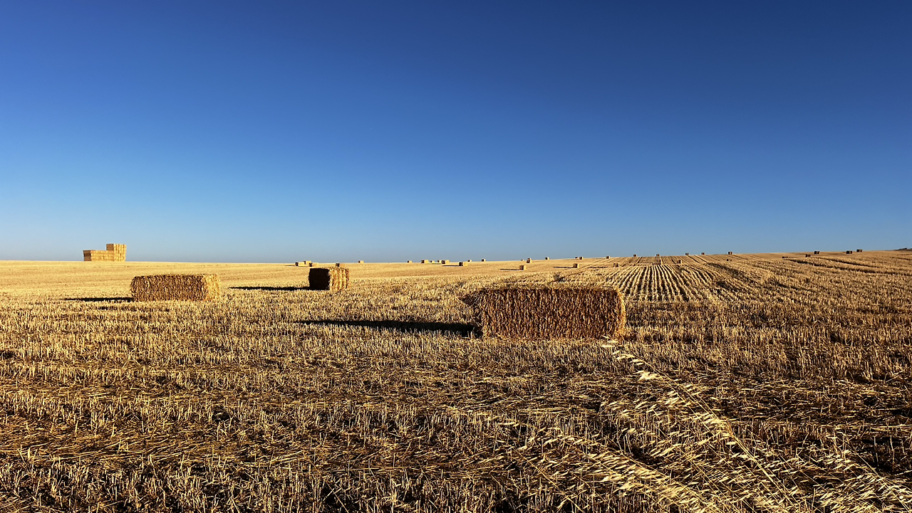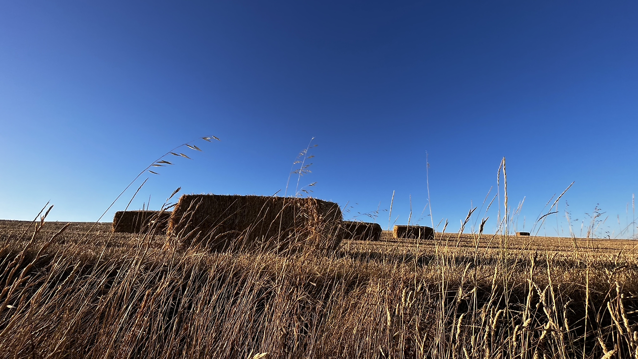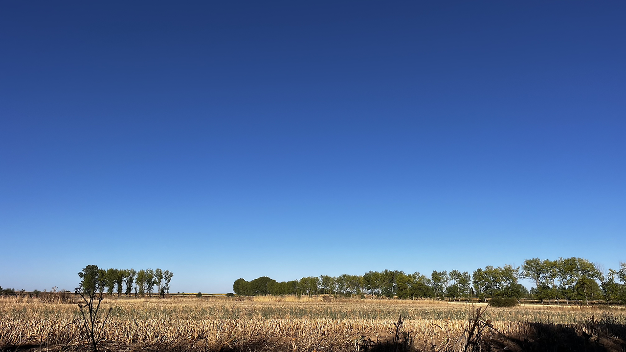 여명이 튼 이후의 황금빛 들녁을 감상하며 다시 까미노에 오른다. 양옆으로 펼쳐진 들녁에 어젯밤 화성인이 다녀가면서 네모난 응가를 해놓은듯한 건초더미들조차 신비롭게 보인다. 간혹가다 왕따나무가 있고 간혹가다 해바라기밭도 있다.