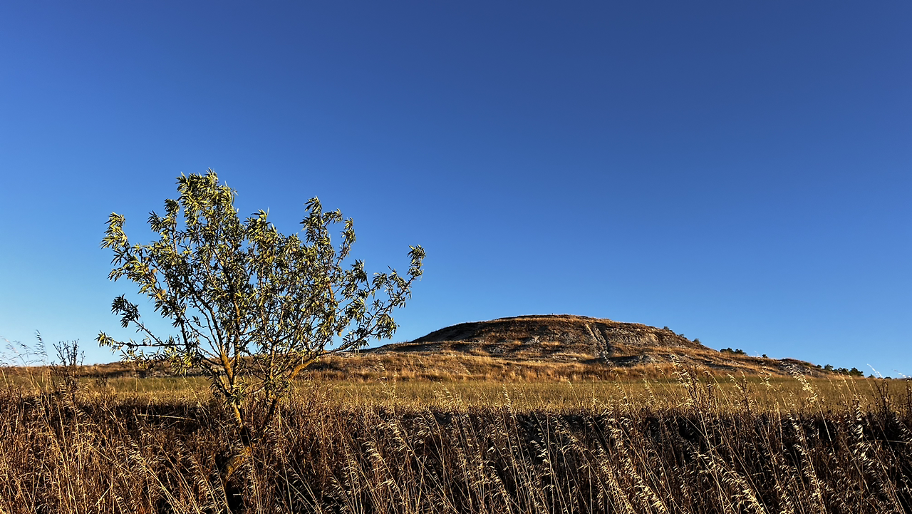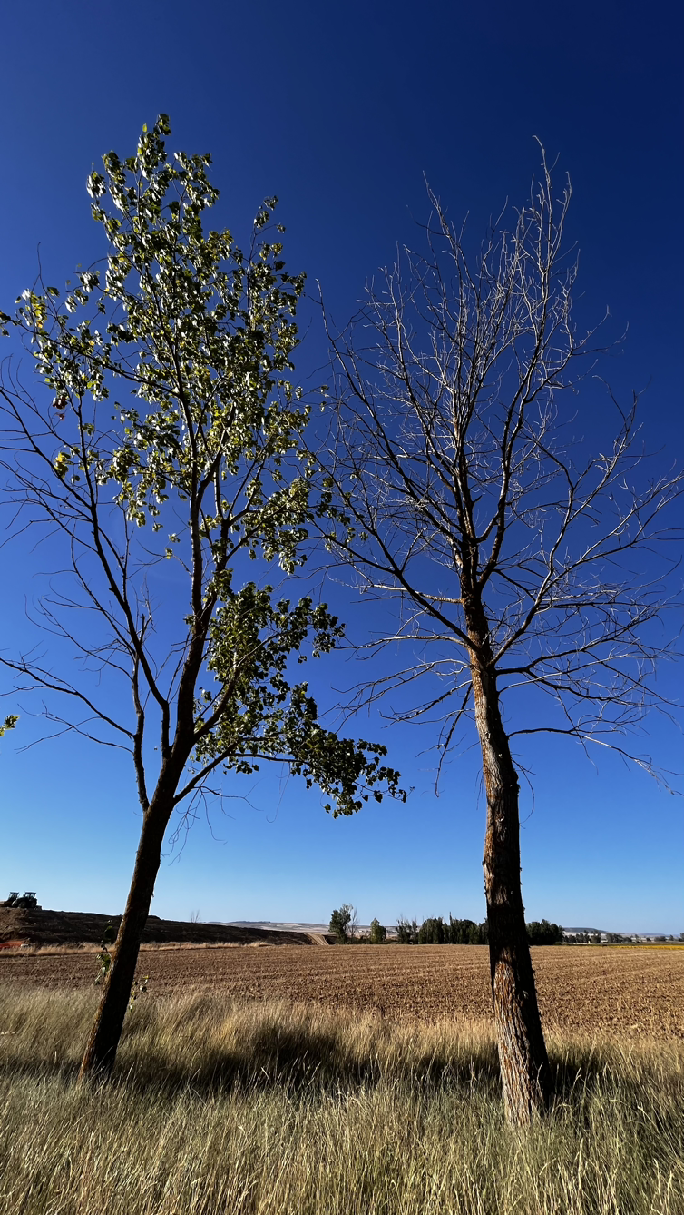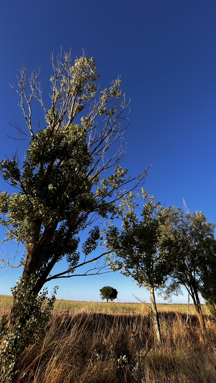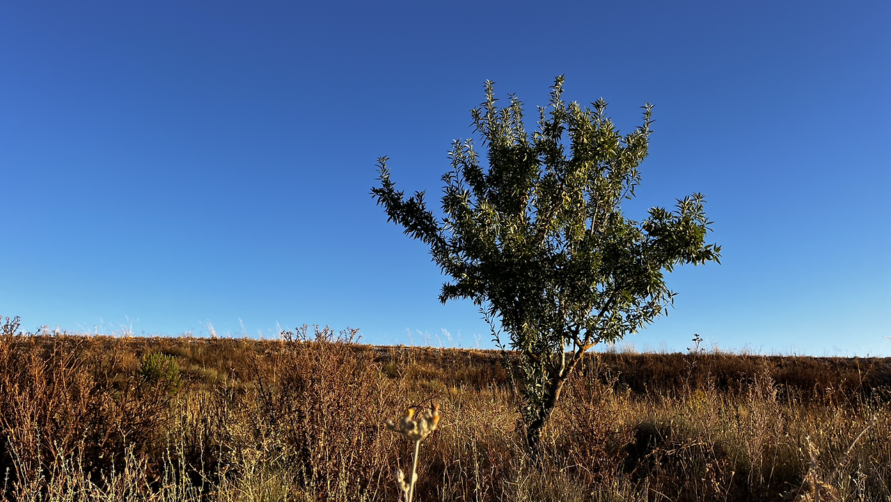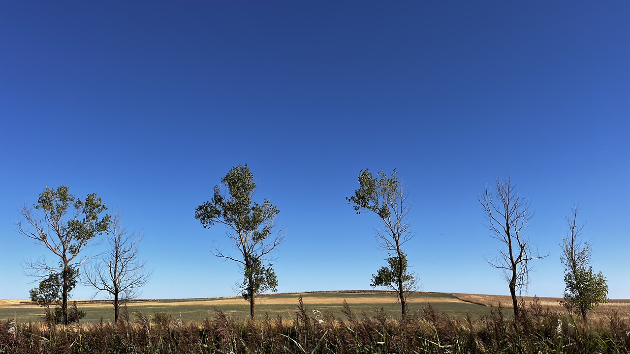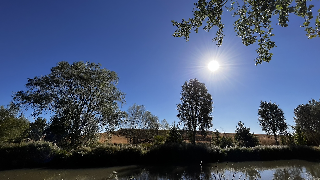 여명이 튼 이후의 황금빛 들녁을 감상하며 다시 까미노에 오른다. 양옆으로 펼쳐진 들녁에 어젯밤 화성인이 다녀가면서 네모난 응가를 해놓은듯한 건초더미들조차 신비롭게 보인다. 간혹가다 왕따나무가 있고 간혹가다 해바라기밭도 있다.