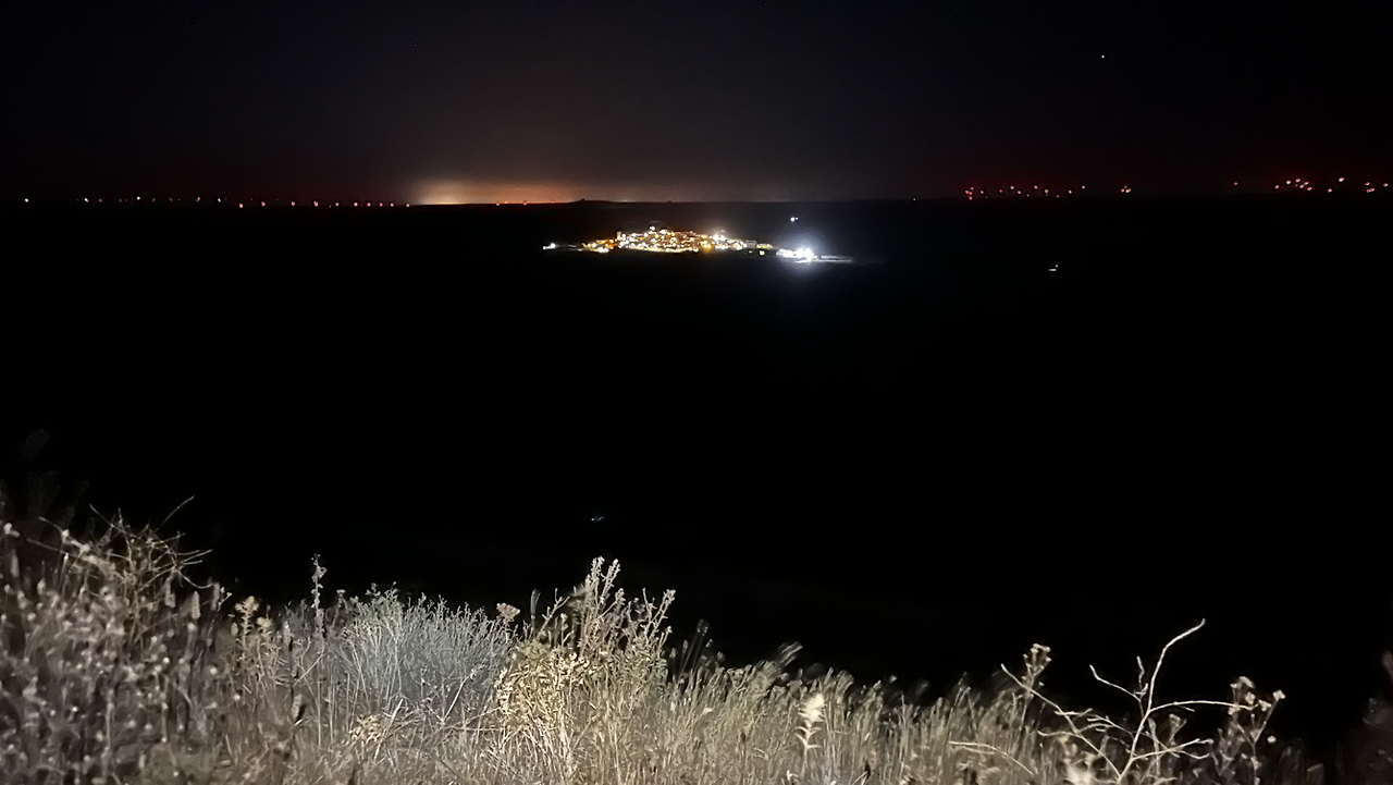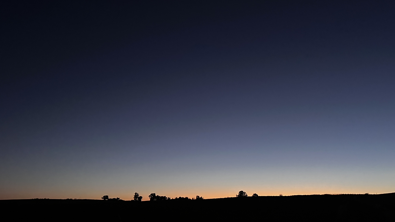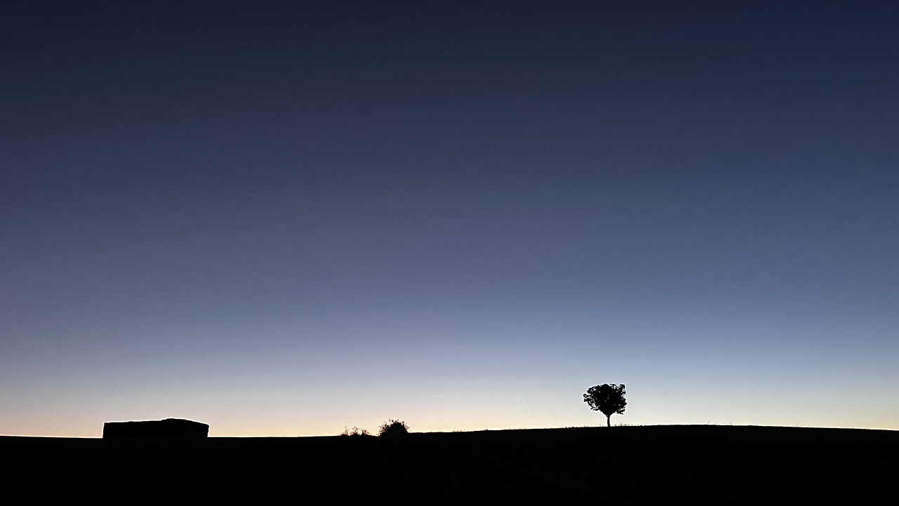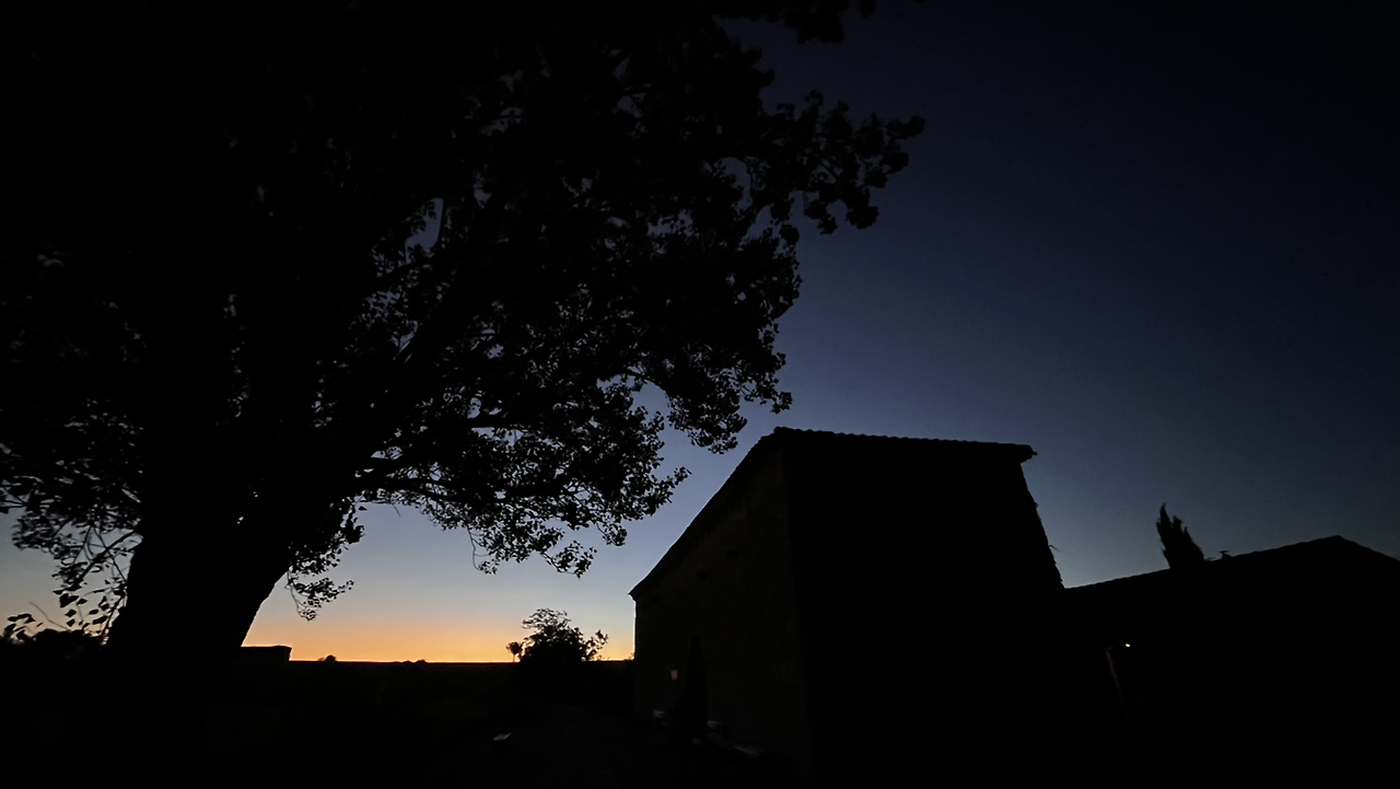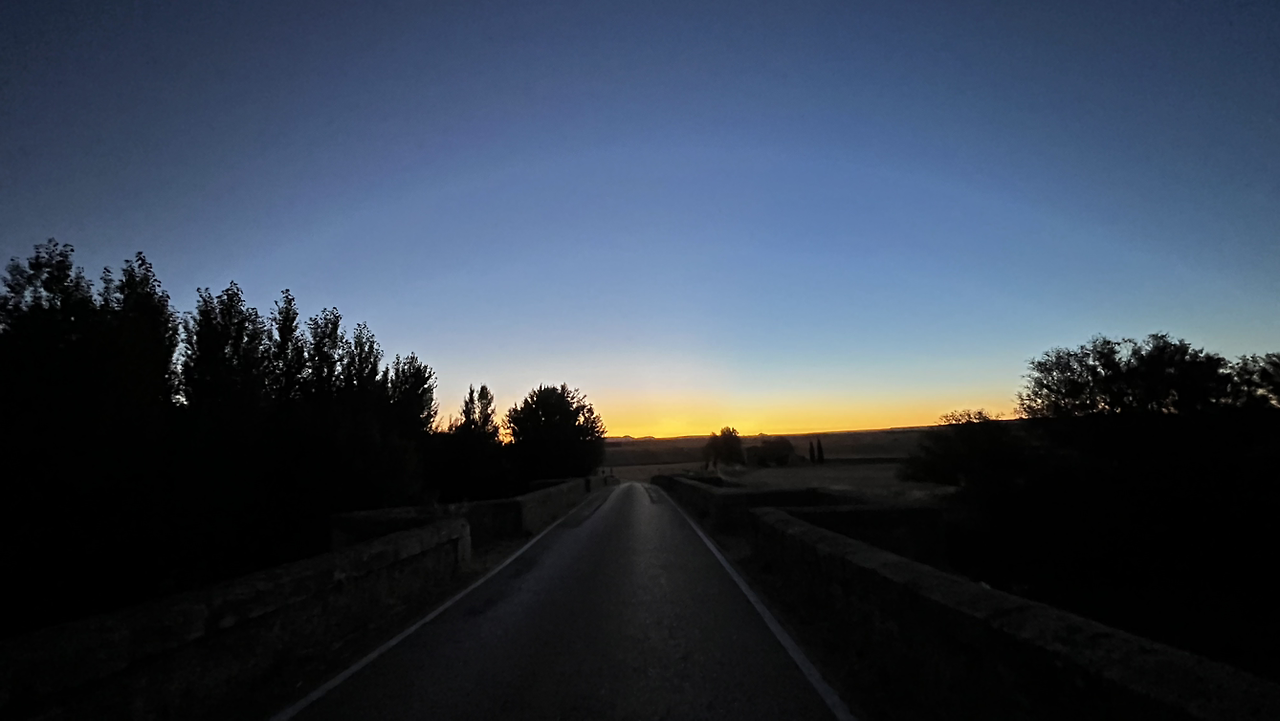 그럼에도 불구하고 까스뜨로헤리스를 벗어나는 큰 언덕, 모스뗄라레스 언덕이 길게 이어져서 새벽부터 숨이 가쁘다. 꽤 긴 오르막을 숨가쁘게 오르니 또 가파른 내리막이다. 그렇게 큰 언덕을 하나 넘고 작은 언덕을 또 하나 넘으면서 첫번째 마을에 가까워질 무렵 등뒤로 동이 터오른다.