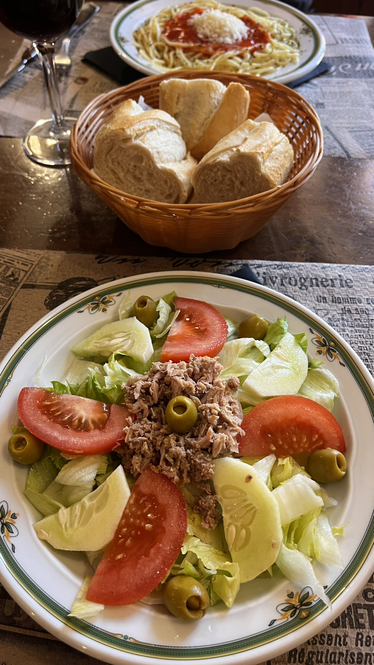 그렇게 지루하지 않은 길 끝에 작은 댐이 있고 그걸 건너면 조금 큰 도시, 어제 40킬로를 내달리지 않았으면 오늘 묵었을 쁘로미스따에서 늦은 아침인지, 이른 점심인지를 샐러드와 그란데 맥주로 때우면서 벌써 이곳까지 왔으니 오늘도 40킬로쯤 걸어보자고 손쌤과 의기투합한다.
