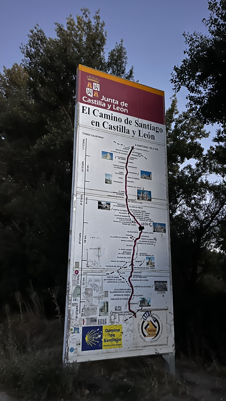어제 40킬로를 걸어서 일정이 다소 변경되었다. 부르고스에서 대도시 레온까지 약 180킬로를 6일 소요로 계획을 짰었는데 어제 40을 걷고나니 남은거리 140이라, 4일동안 평균 35로 걸으면 5일만에 도착할 수 있게 된거다.