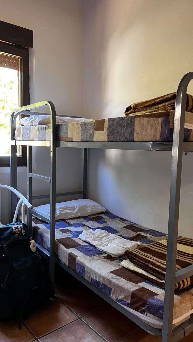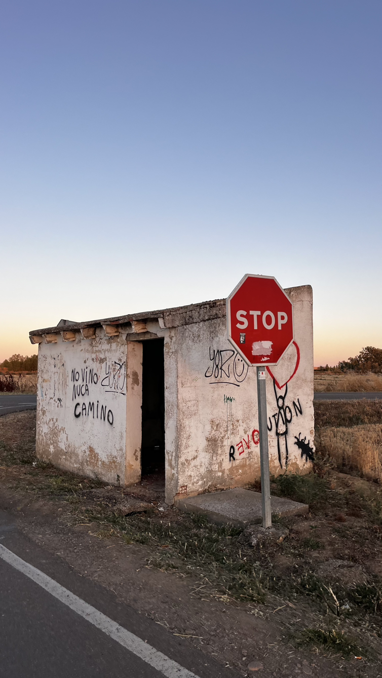 그런데 그렇게해서 더 걷게 된 15km가 좀 고된 자동차도로 옆길이다. 가도가도 끝나지 않을 것 같은 자동차도로 옆 까미노길이 작은 마을 두 곳을 지나서 오늘의 종착지에 닿도록 이어진다. 목이 너무 말라서 오늘도 ’토리아에즈 비-르‘후에, 결국 이번 순례여행에서 가장 늦은 시간인 오후 2시쯤 숙소에 체크인하고 널부러진다.