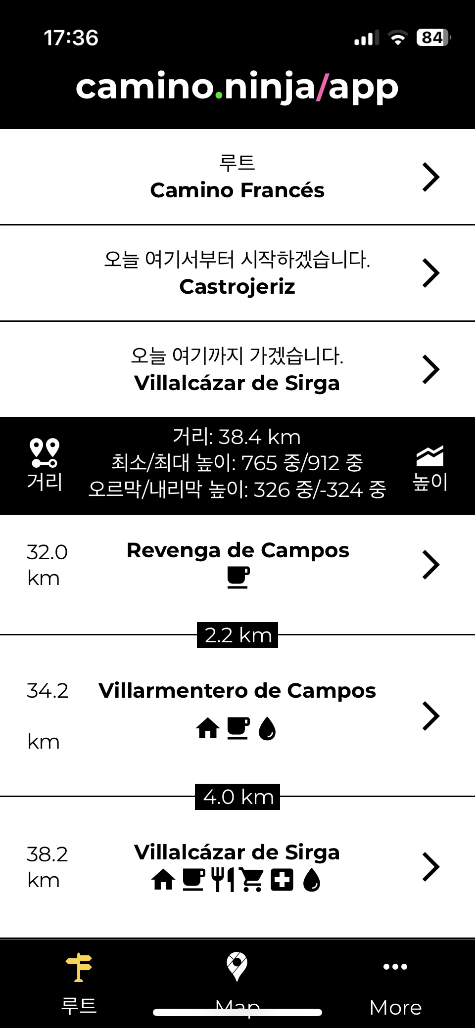 까미노길이 이동거리와 실제 걸은 거리에는 항상 갭이 있다. 도시를 빠져나오는 데나, 길을 잘못 들어 다시 돌아가는 데나, 하다못해 마트나 식당을 다녀오는 데에 소요되는 거리가 그것인데 보통 1할은 더해야 맞는 것 같다. 어제도 이동거리는 39.9km지만 건강앱에서는 43.5km 약 59,000보를 걸은 걸로 확인된다.