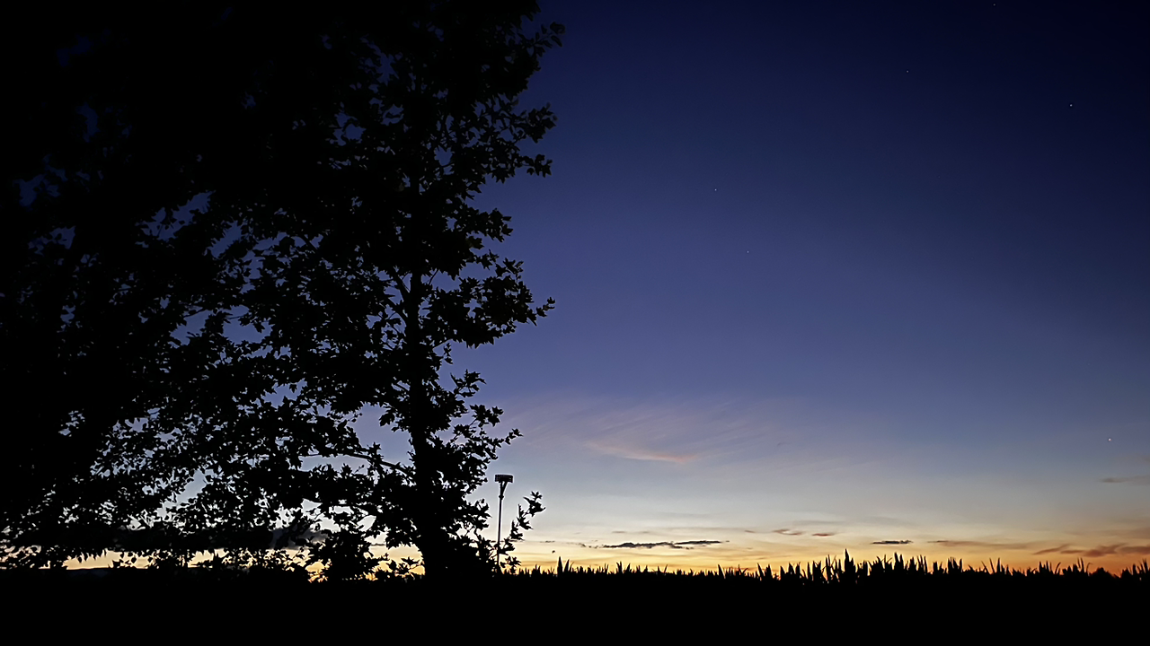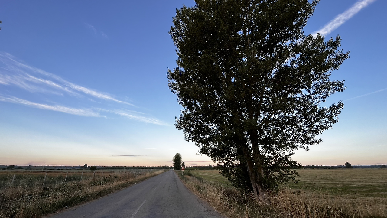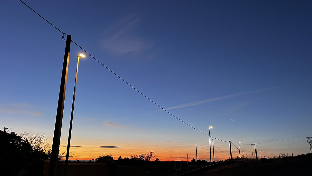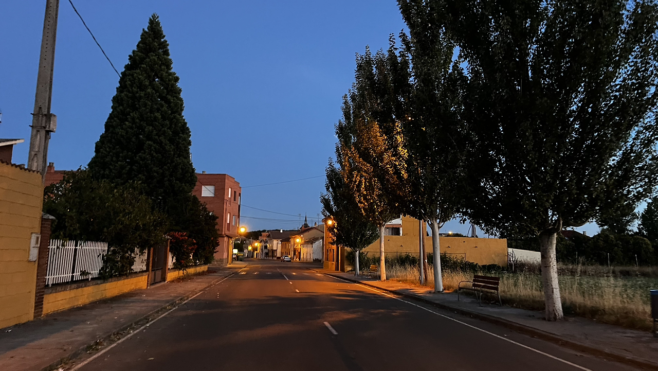 렐리에고스까지도 깜깜하다가 만시야데라스물라스를 향해 가는 길에 먼동이 튼다.