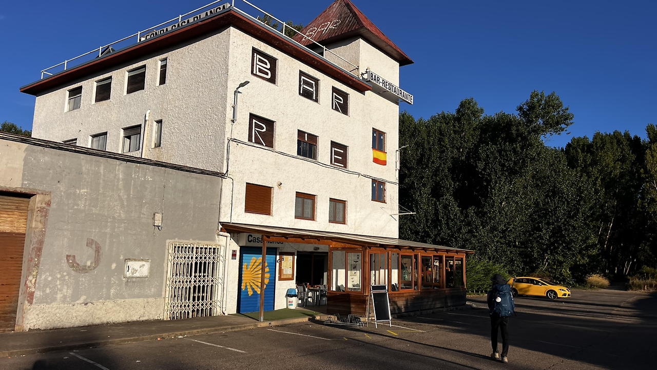 알베르게 주인은 끝내 나타나지 않다가 새벽 5시 전에 알베르게를 나와 골목을 나서는데 때마침 반대방향에서 오던 빨간 자동차가 멈추더니 보조석에서 어제의 그 미니바에서 잠깐 보고 키만 건네주던 주인이 내린다.