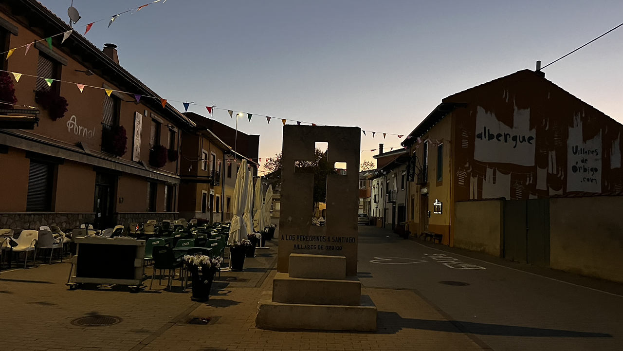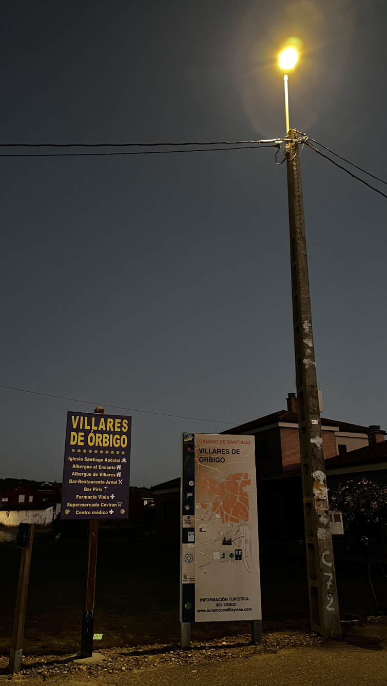 요며칠간 별빛이 아닌 달빛과 함께 걷는 길이다. 숙소를 나서 한시간 반쯤을 비몽사몽간에 달빛과 헤드렌턴에 의지해서 걸으니 오스삐딸데오르비고에 닿는다.
