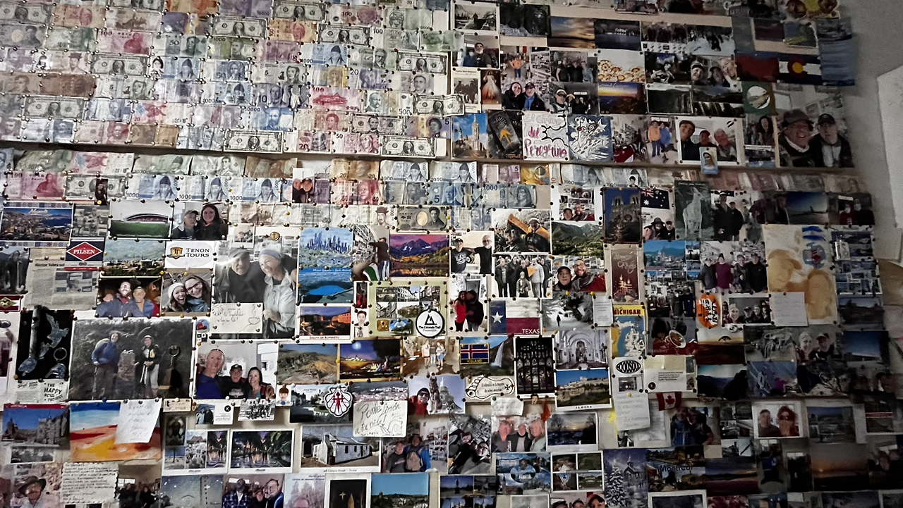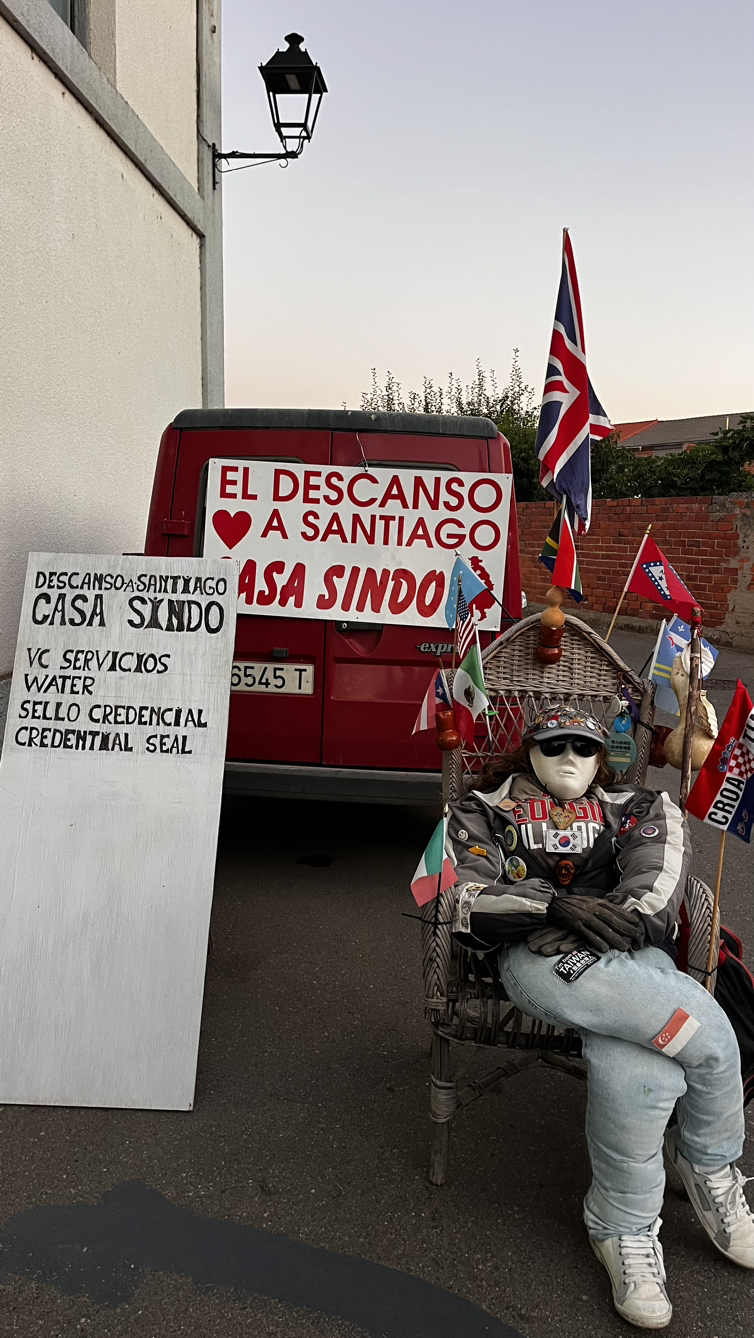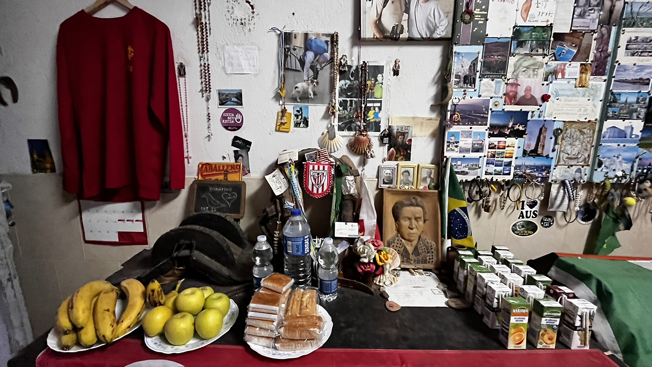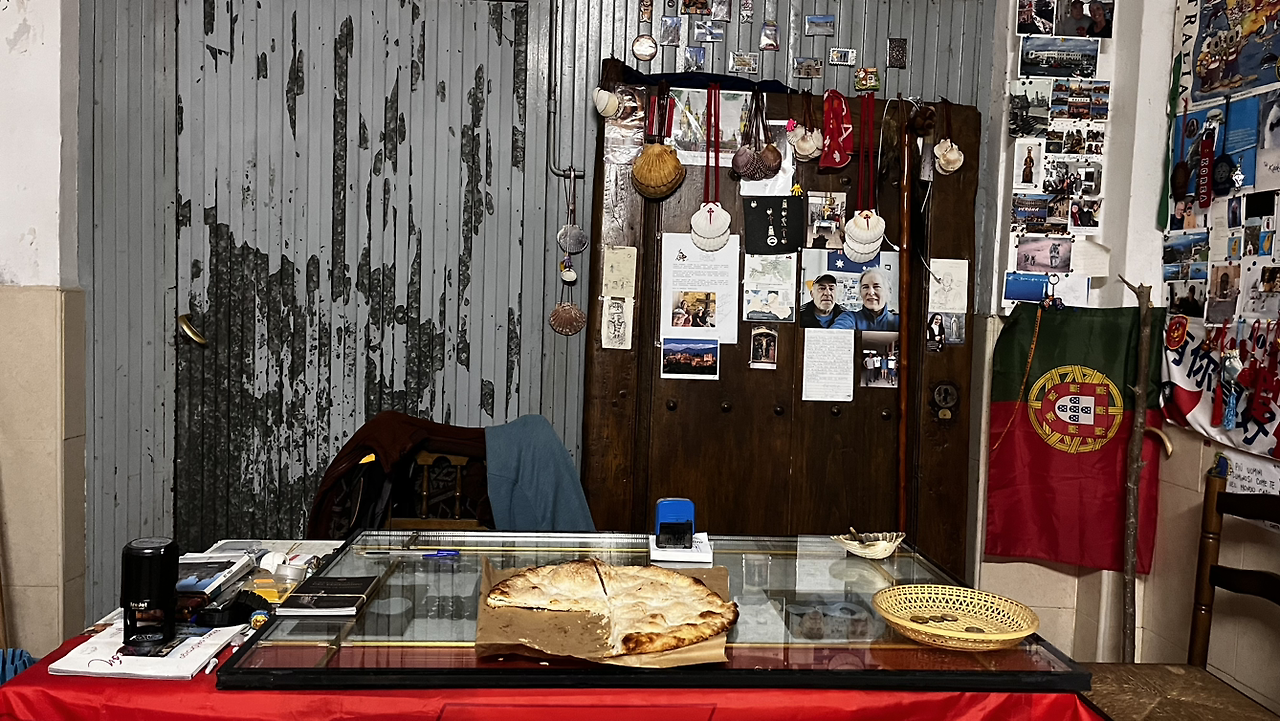 순례자들에게 빵과 커피와 그외에도 다양한 서비스를 제공하는 아저씨를 만난다. 서양아이들은 슥 지나쳐가는 그곳을 우린 들어가앉아 커피와 돼지기름으로 구웠다는 의외로 달달한 빵을 맛있게 먹는다. 기부제라 3유로를 내고는 기념촬영까지!