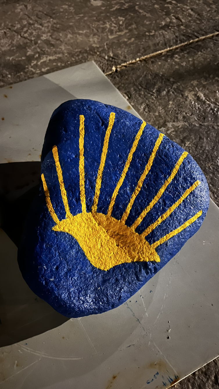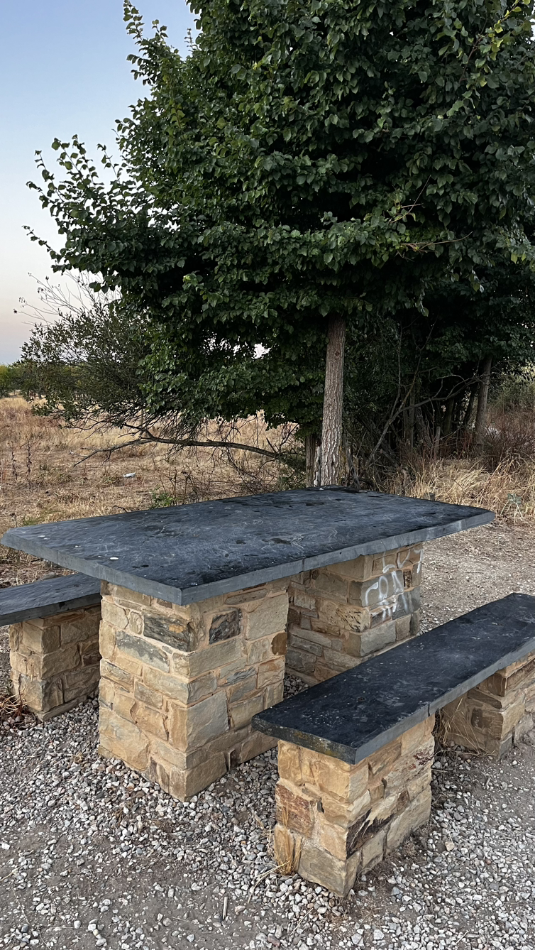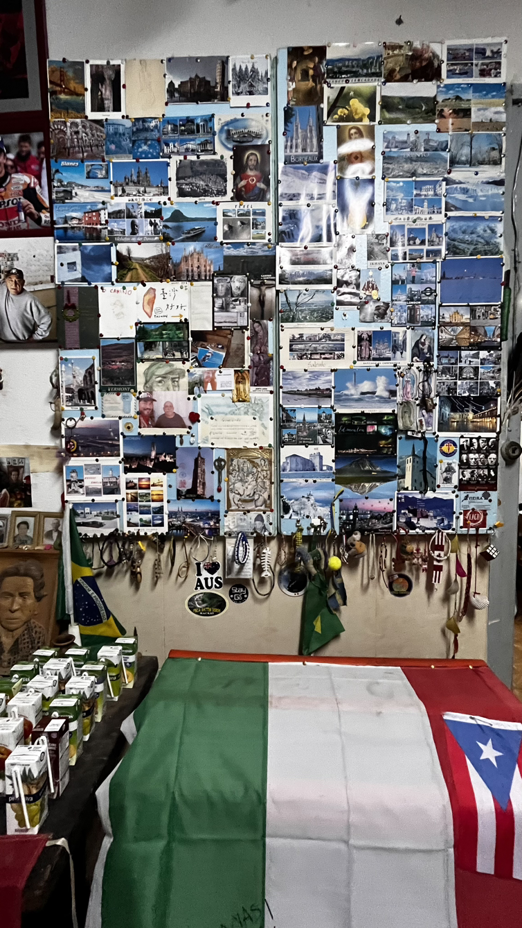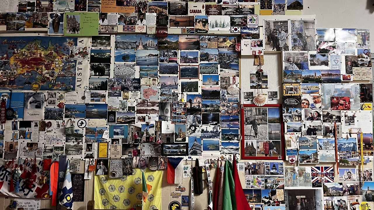 순례자들에게 빵과 커피와 그외에도 다양한 서비스를 제공하는 아저씨를 만난다. 서양아이들은 슥 지나쳐가는 그곳을 우린 들어가앉아 커피와 돼지기름으로 구웠다는 의외로 달달한 빵을 맛있게 먹는다. 기부제라 3유로를 내고는 기념촬영까지!
