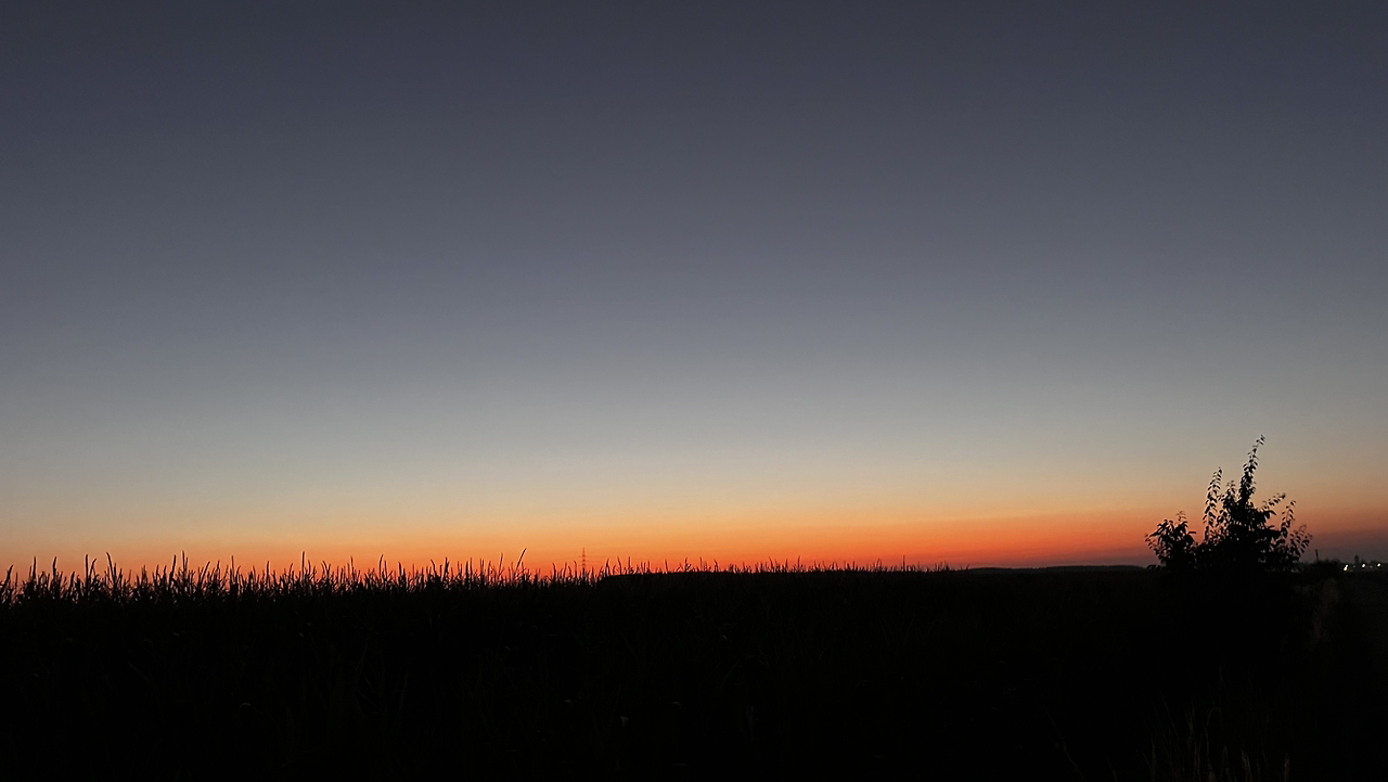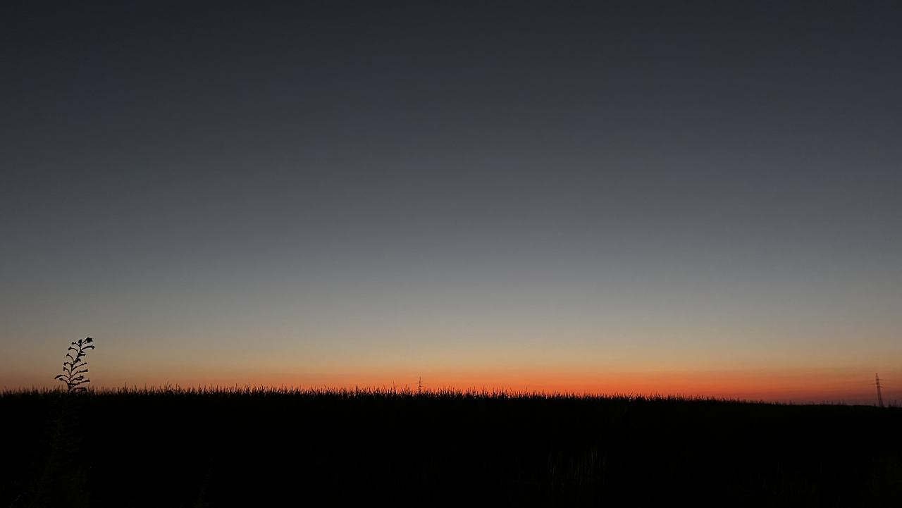 도시를 벗어나고 캠핑장을 지나서 언덕길을 오르다가 뒤돌아보니 신비로운 일출이다.