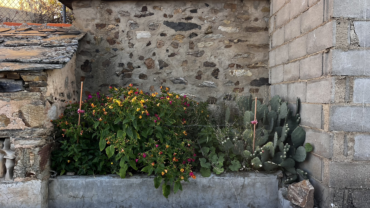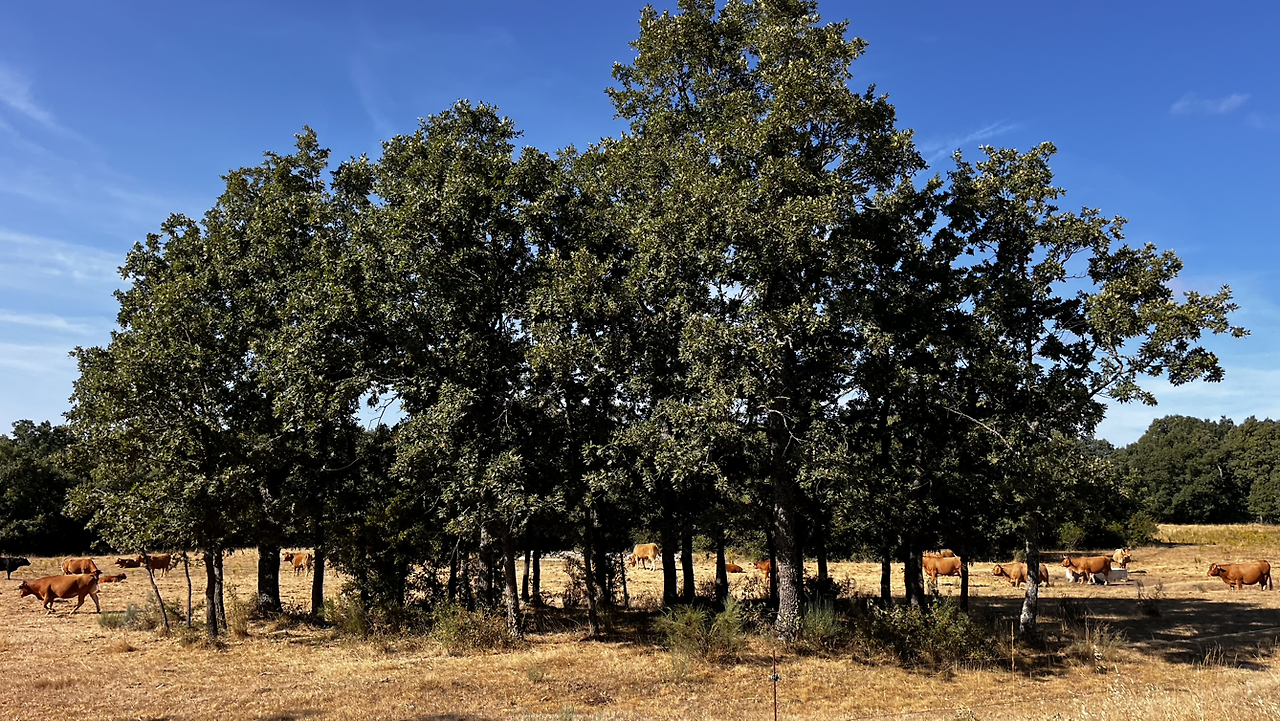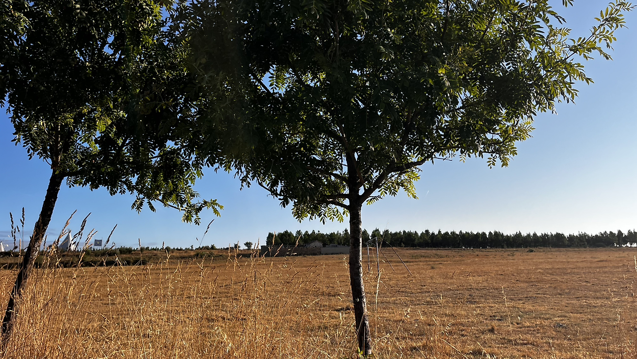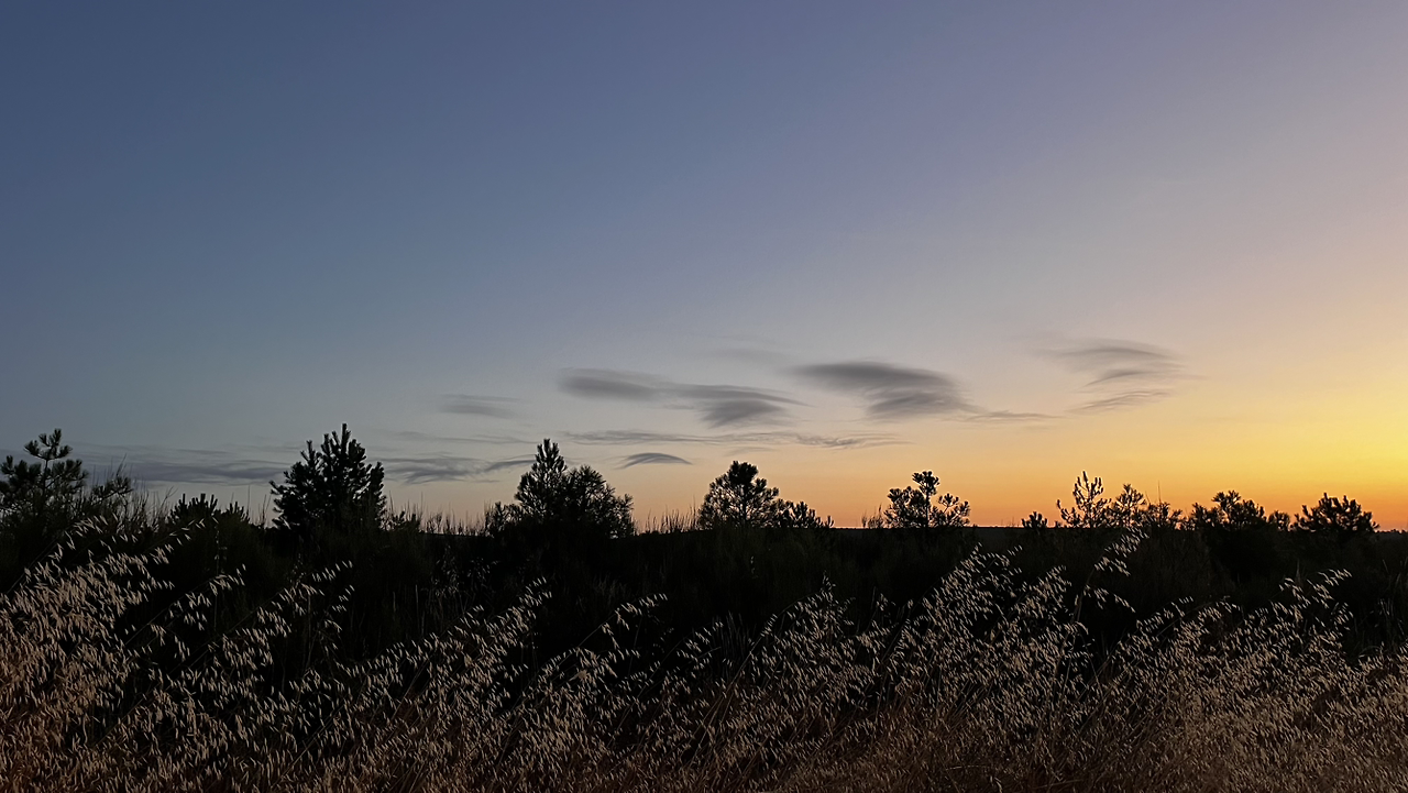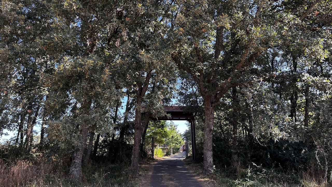 동틀 무렵에 보니 풍경은 딴판이다. 이젠 메세타평원을 완전히 벗어나서 어느새 레온산맥이 성큼 주변을 차지하고 있다. 시골풍경도 황토빛 토지에 나무와 잡풀들이 이제는 한풀 꺾인 더위와 어쩌면 금방 덮쳐올 겨울처럼 한기를 내뿜고 있다.