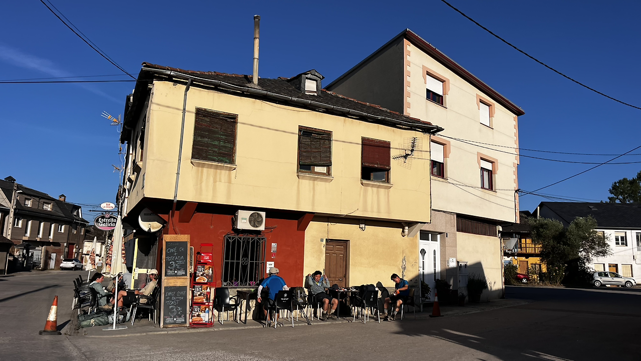 그리고, 짧지않은 오늘의 목적지 비야쁘랑까델비에르소를 7킬로 남겨두고 까까벨로스에서 피맥으로 점심을 먹는데 놀라운 일이 벌어진다.