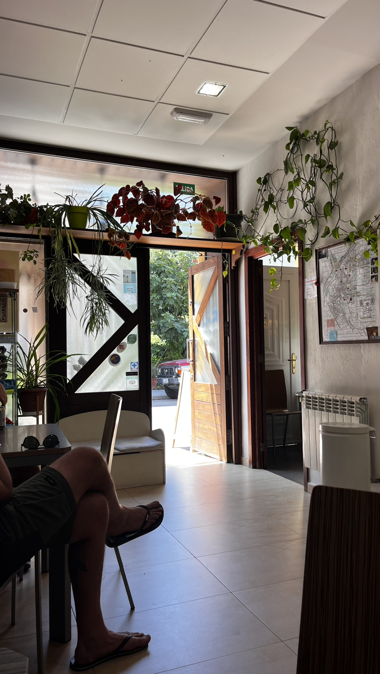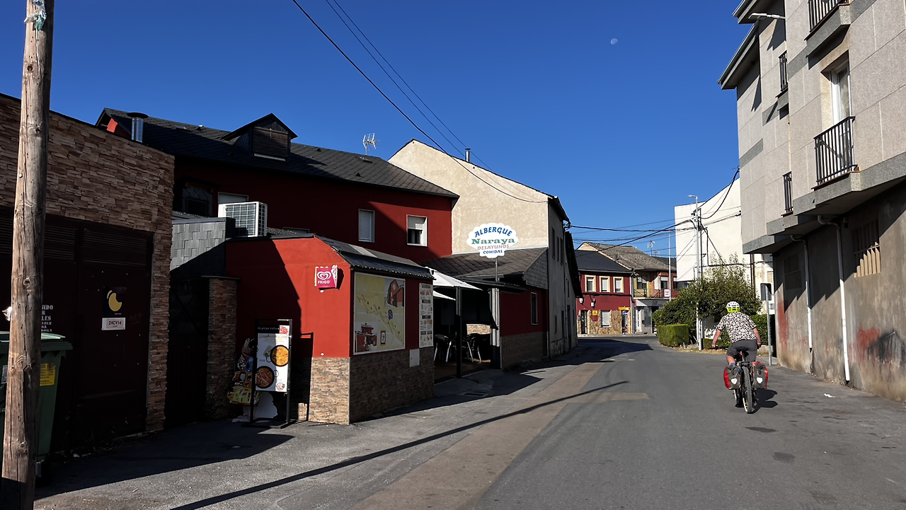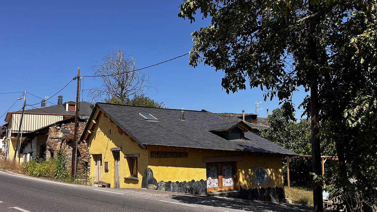 오늘 묵는 곳이 ‘스페인하숙’ 촬영지라 숙소에 체크인 후 샤워와 빨래를 마치고선 마트에 들름겸 촬영 알베르게에 가보았다. 유해진이 온갖 잡동사니를 만들며 드나들던 뒷문까지 올라가 보았다. 촬영때와는 많이 달라진 모습이고 들리는 소문에 의하면 알베르게의 청결도나 친절함이 그때완 사뭇 다르다고 한다.