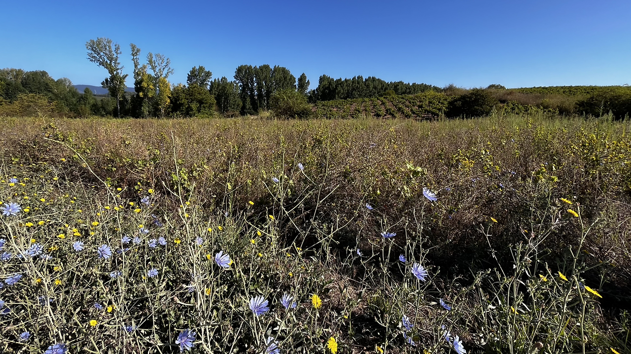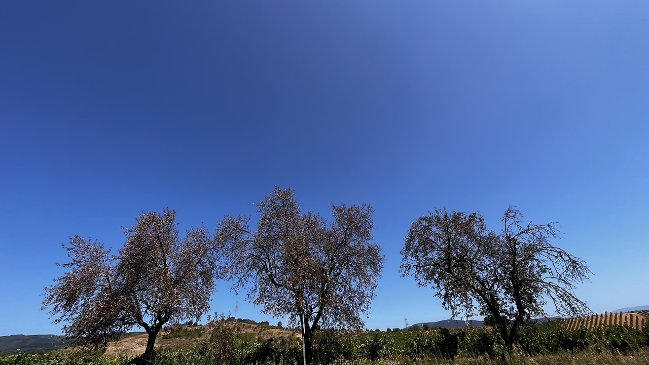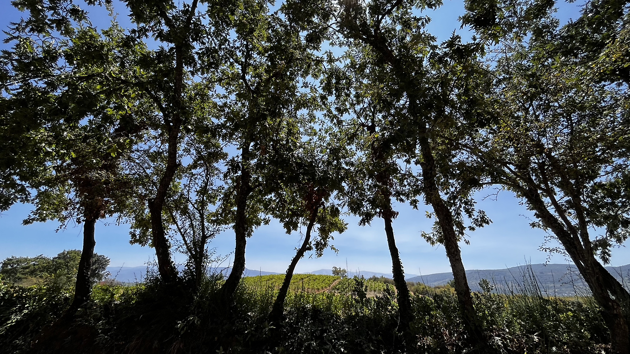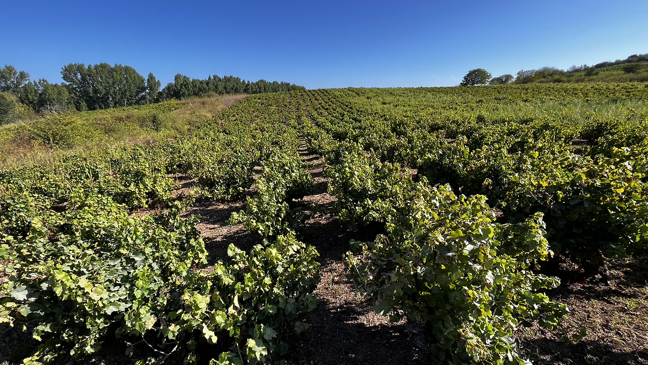 비야쁘랑까델비에르소까지 어제의 S H선생님과 앞서거니 뒤서거니 하면서 오르막과 내리막을 힘겹게 걷는 동안에 한동안 사라졌던 포도밭이 즐비하다.