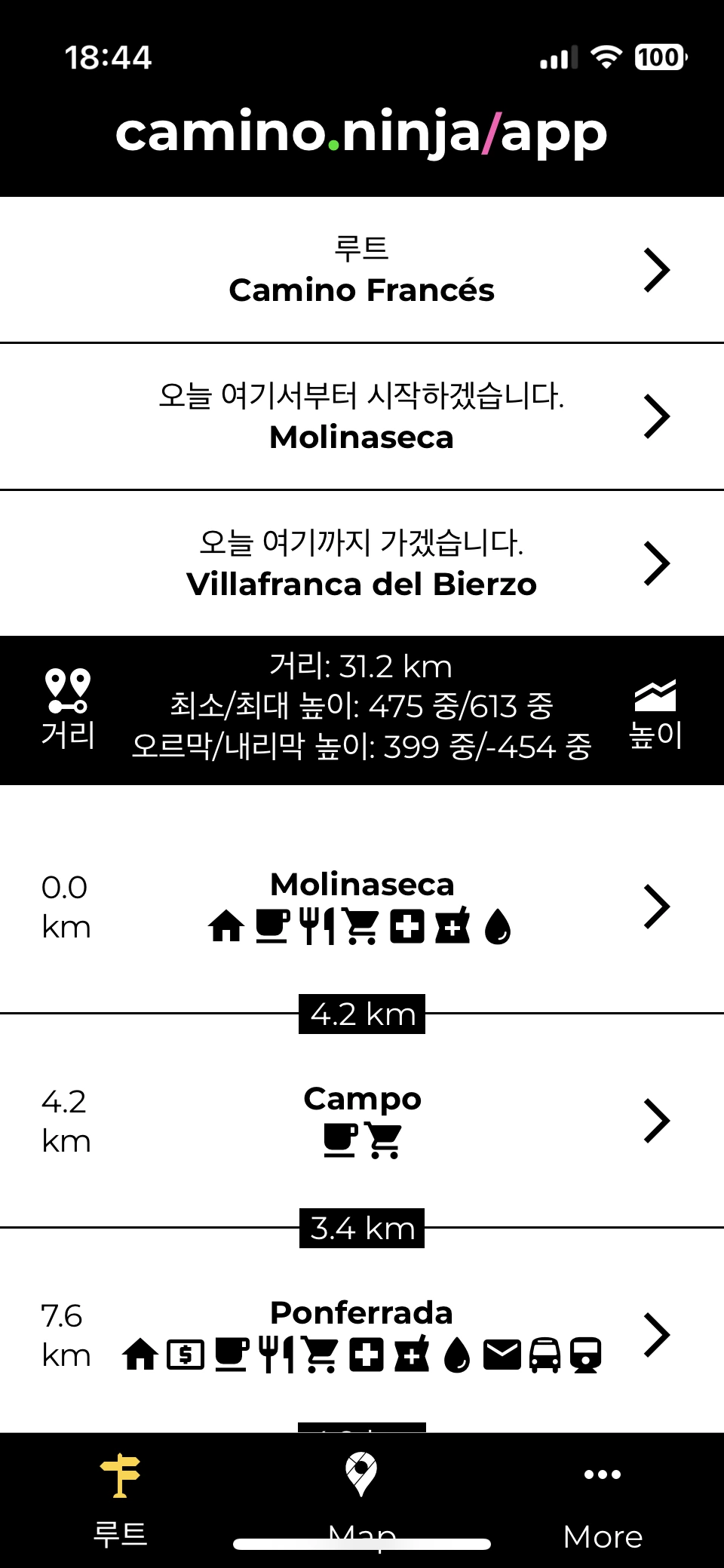 비에르소 지방의 수도인 뽄뻬라다Ponferrada를 8킬로 앞둔 지점에서 묵은 탓에 템플기사단의 도시 뽄뻬라다를 이른 시간에 거쳐만 가야 하는 아쉬움이 있는 날이다.