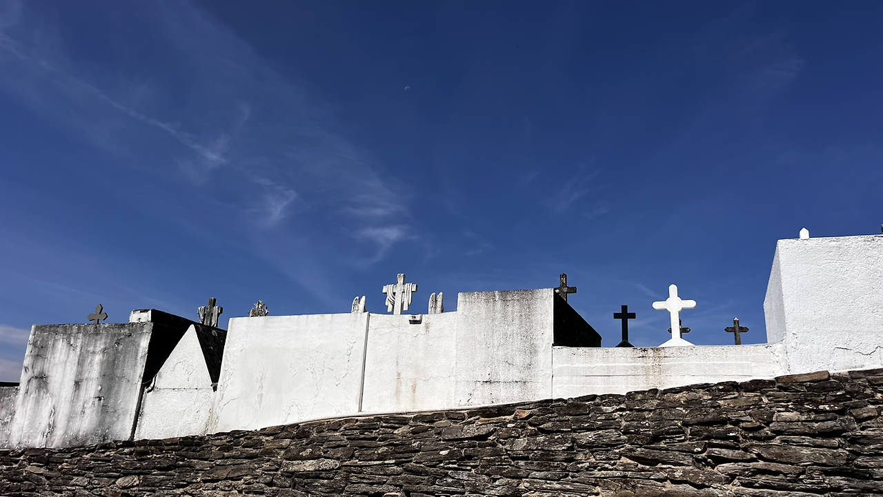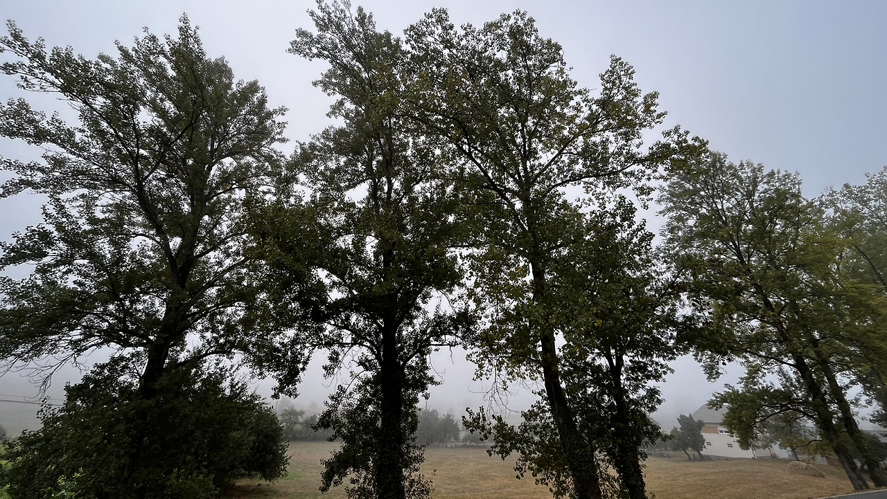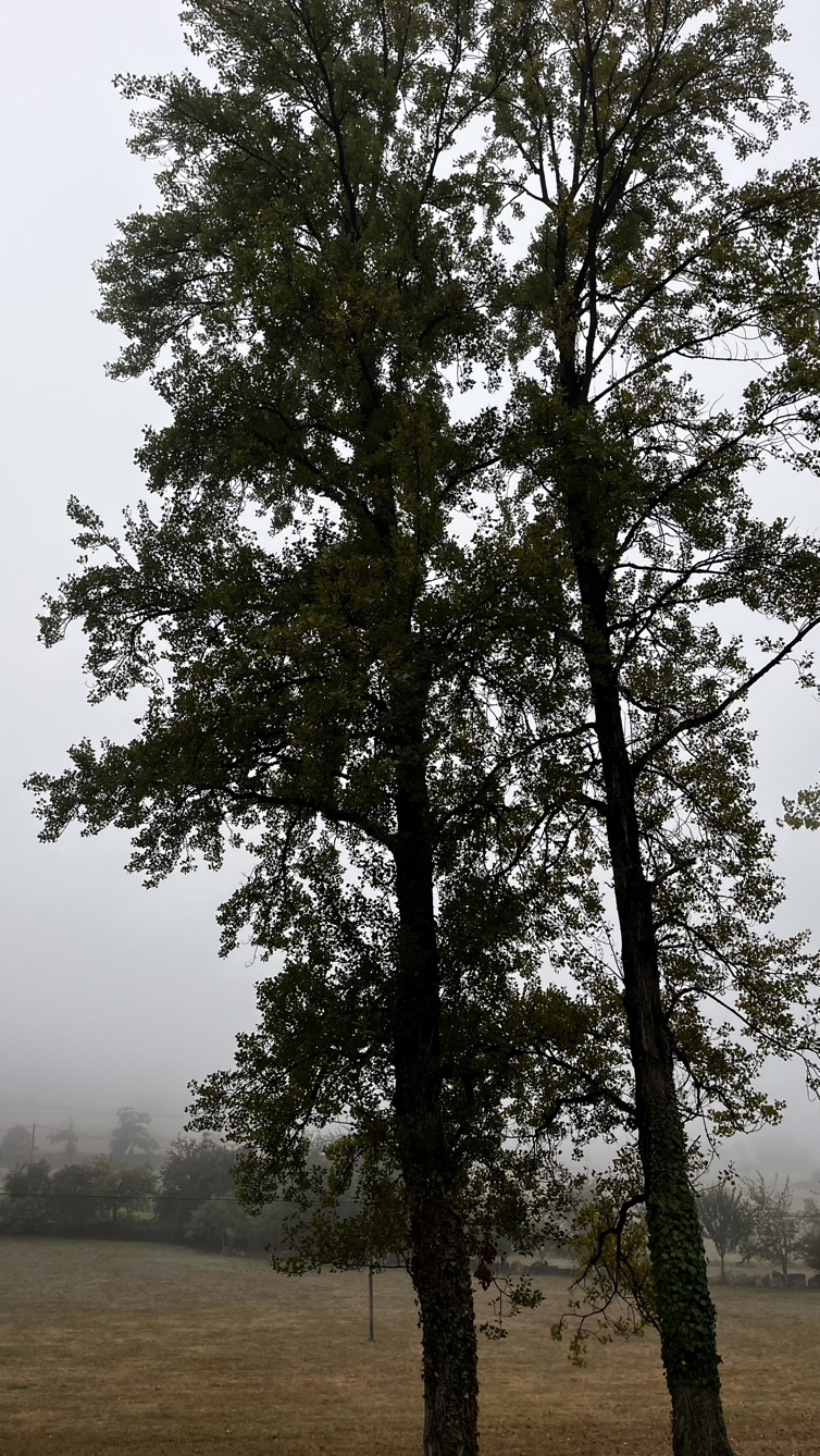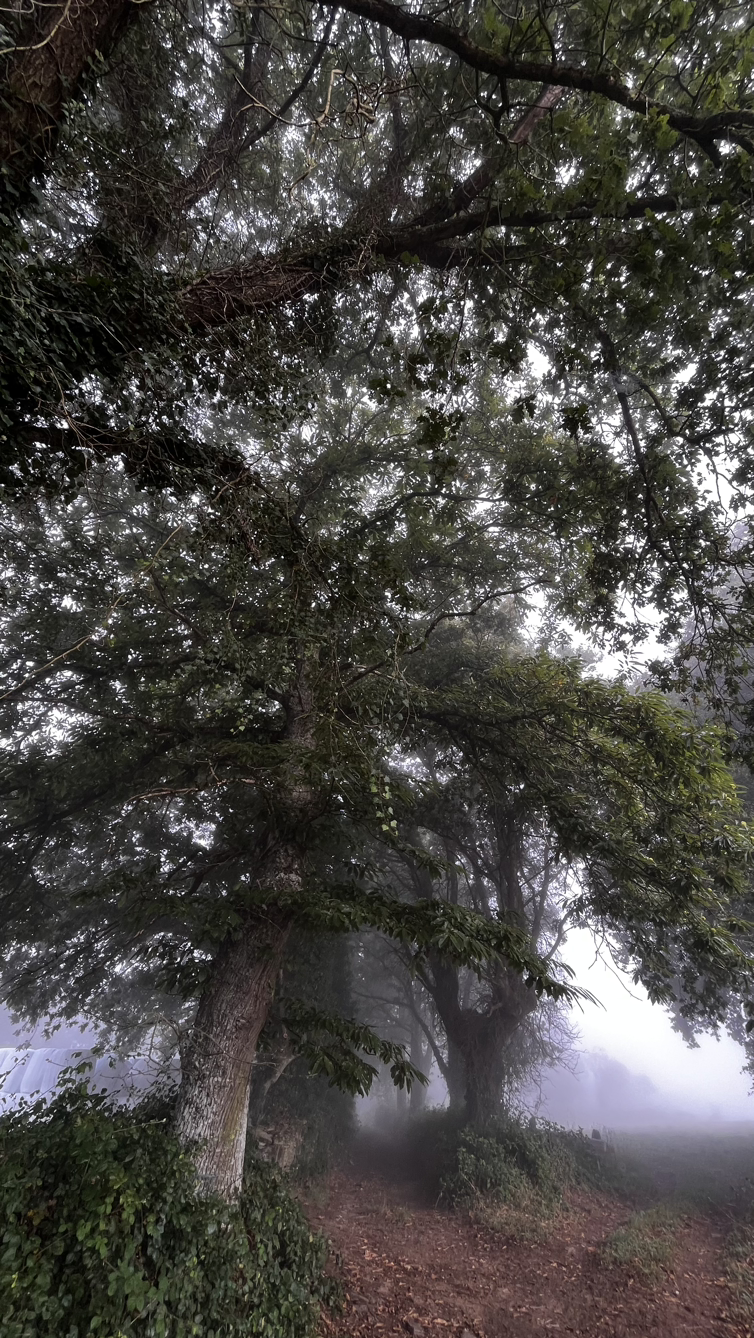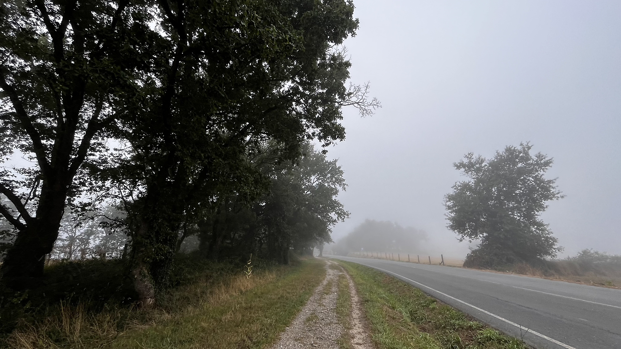 해가 솟았을 9시 이후에, 어쩌다 열린 바에서 크로아상에 진한 아메리카노를 마시고 나오니 마을을 안개가 둘러싸고 있다.