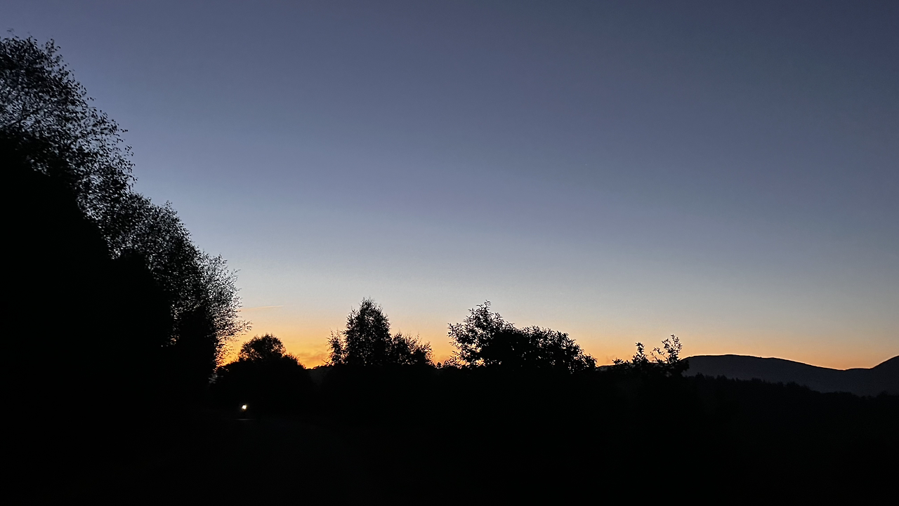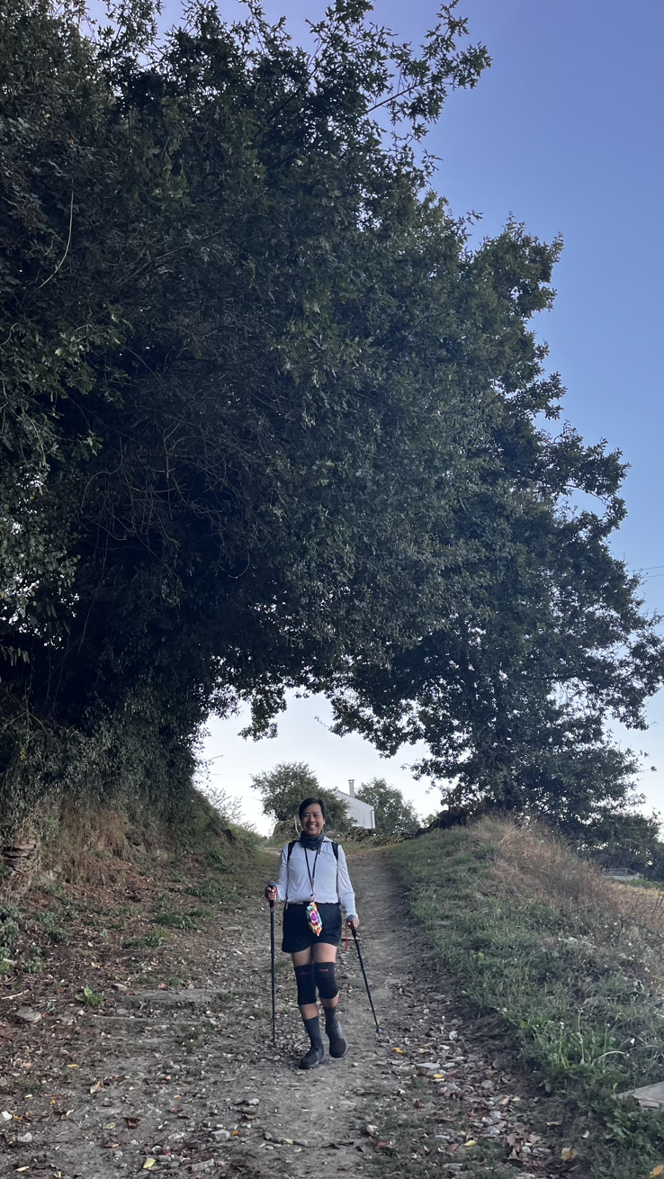 아직은 어둑한 숲에서 필리핀 아줌마 웽을 만난다. 와이즈앱인가 하는 어플에서 표시하고 있는 까미노가 그야말로 등산로를 가리키고 있다. 바로 옆에 까미노 표지석이 가르키는 노란 화살표를 따라가면 될텐데 앱과 다르니 혼란에 빠진 모양이다.