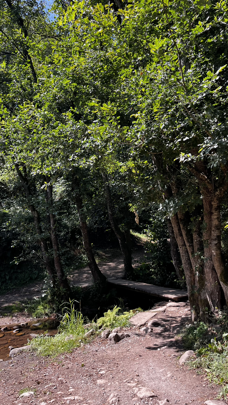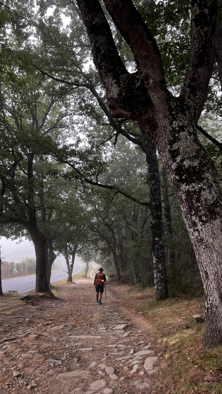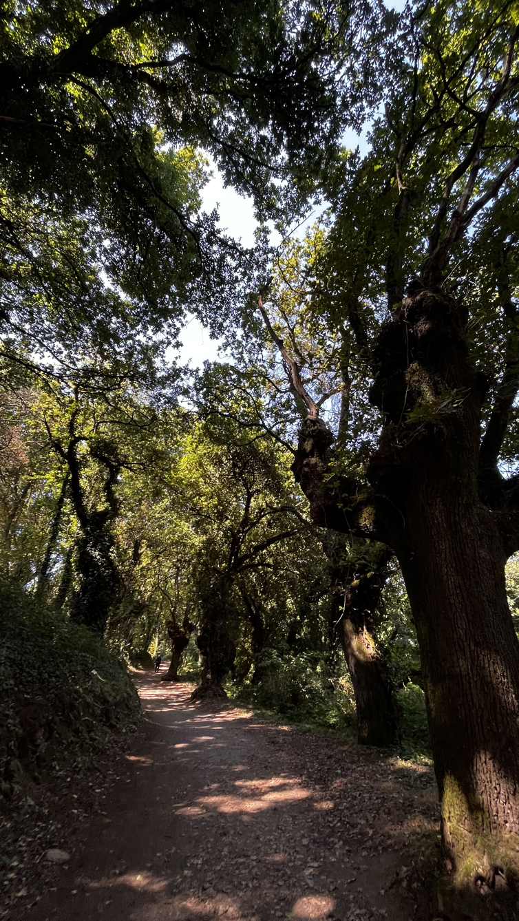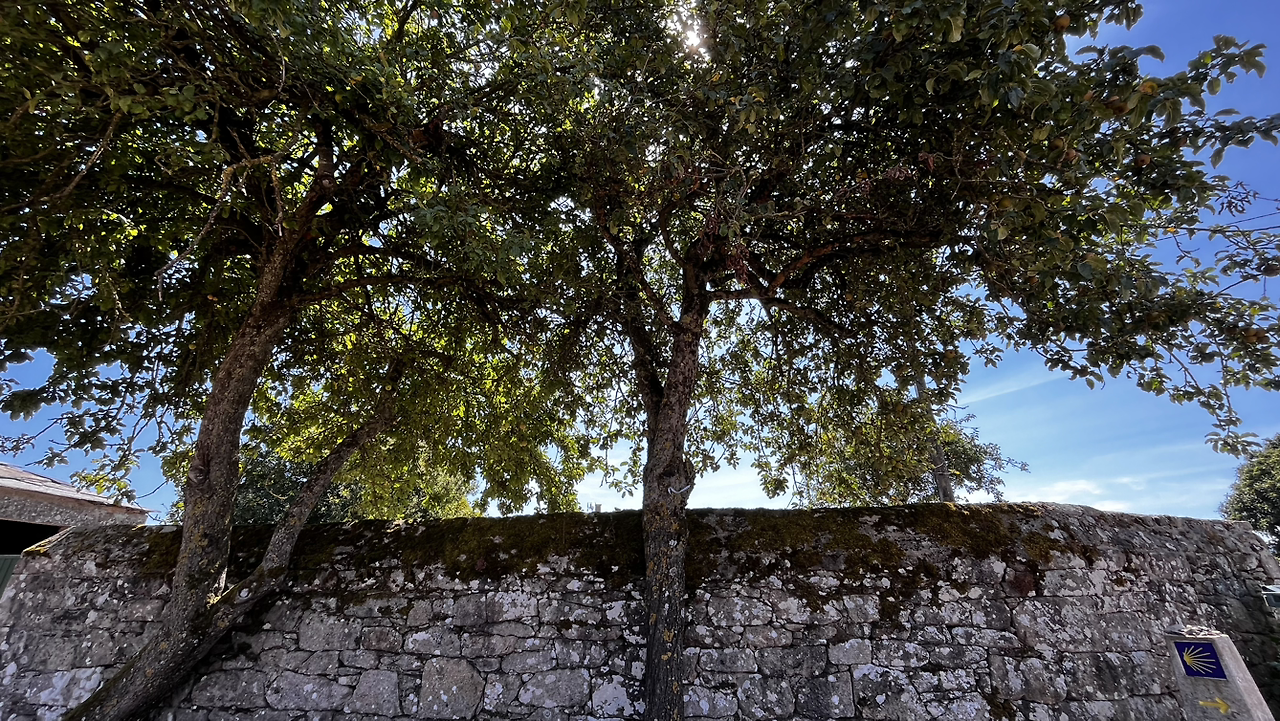 짧은 대화와 긴 침묵속에서 그리 오래 걸은 것 같지 않은데 어느덧 사리아다. 사리아이므로 사리아의 명물 뽈뽀(문어요리)를 먹어보지 않을 수 없다. 전문 식당을 수소문해서 문어찜 요리에 시원한 맥주로 점심을 해결하고는 다시 걷는 길, 비레이까지는 아름드리 나무들이 즐비한 오르막을 걷는다.