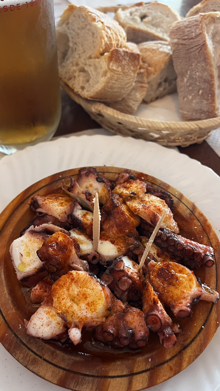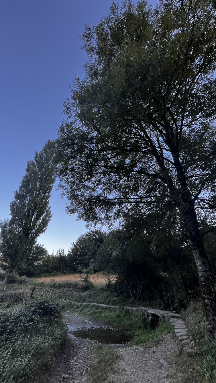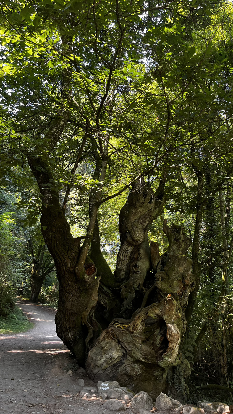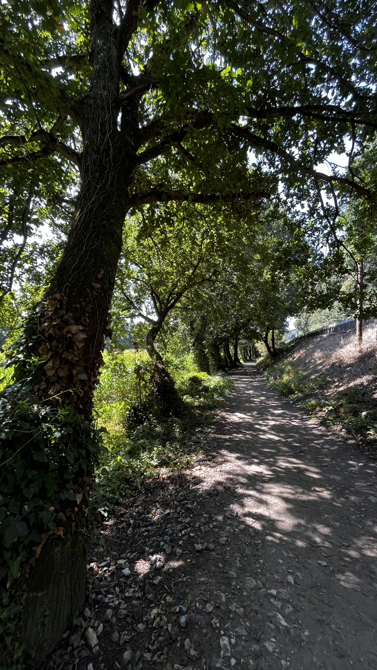 짧은 대화와 긴 침묵속에서 그리 오래 걸은 것 같지 않은데 어느덧 사리아다. 사리아이므로 사리아의 명물 뽈뽀(문어요리)를 먹어보지 않을 수 없다. 전문 식당을 수소문해서 문어찜 요리에 시원한 맥주로 점심을 해결하고는 다시 걷는 길, 비레이까지는 아름드리 나무들이 즐비한 오르막을 걷는다.