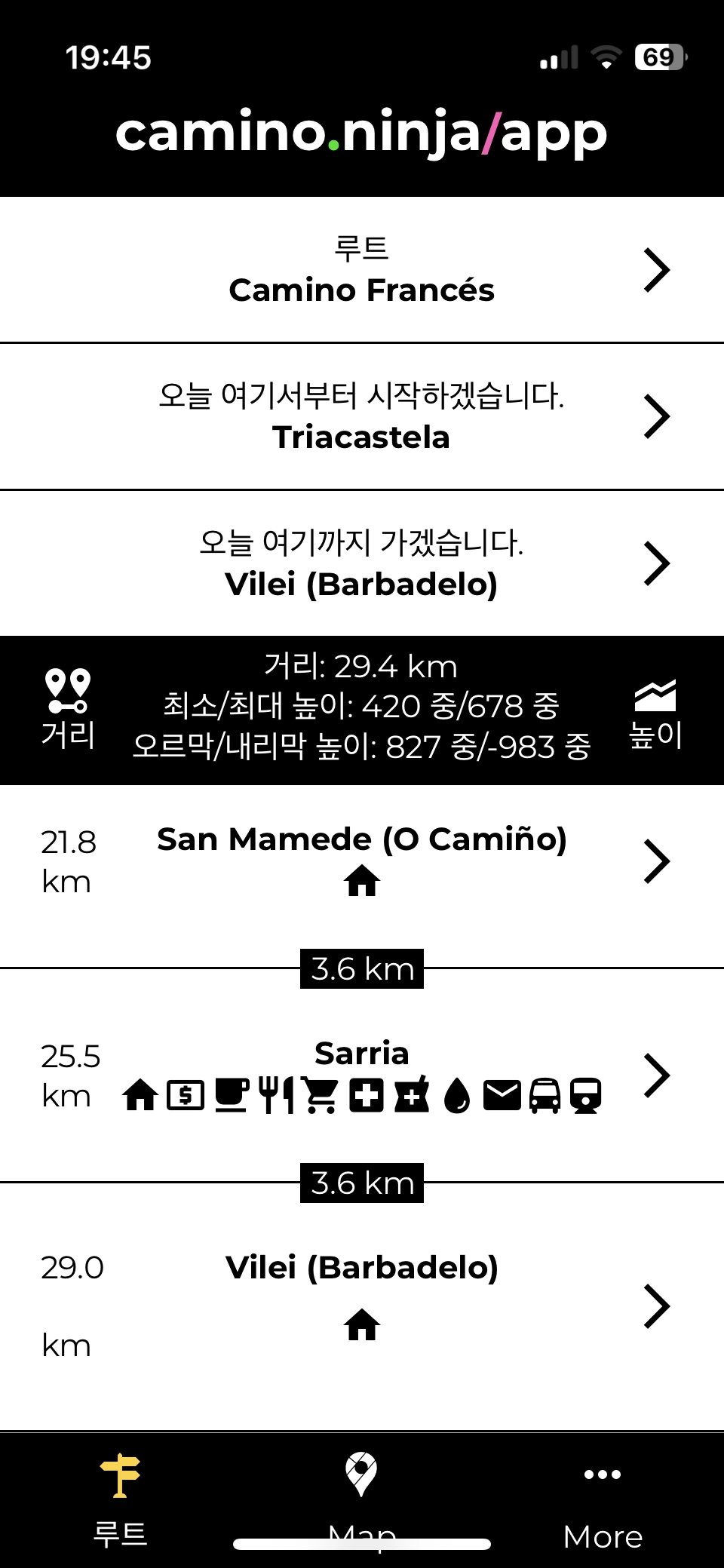 뜨리아까스뗄라부터 사리아까지 가는 두 가지 루트가 있다.