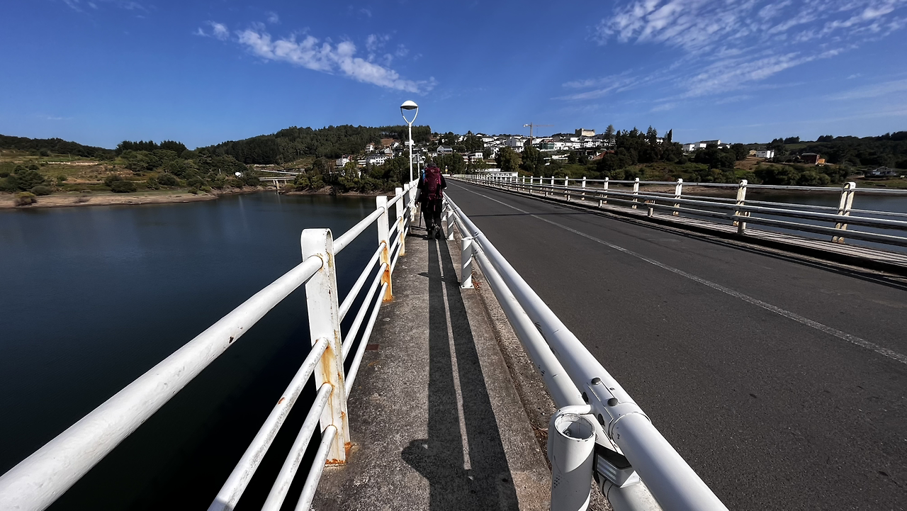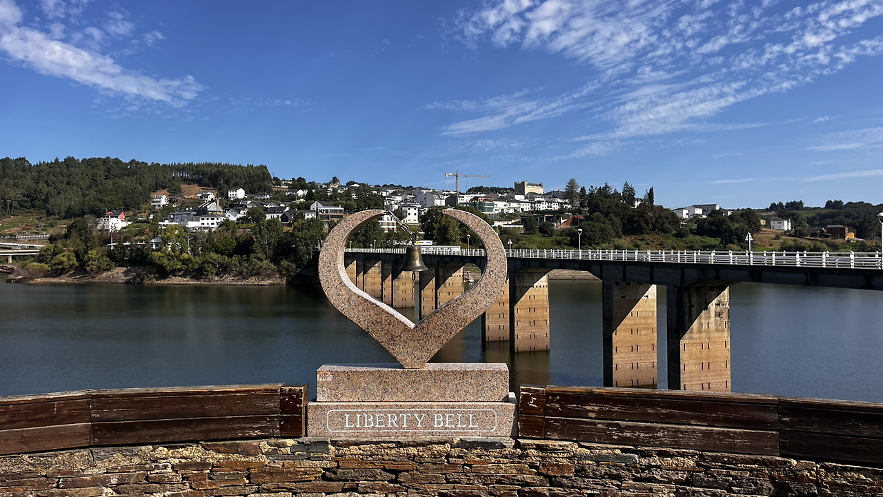 오늘 늦게 출발한 탓에 중간에 복숭아 한알 먹을 정도의 휴식만 취하고선 급하게 걸어 11시 반쯤 뽀르뚜마린에 도착한다. 큰 강을 건너기전 뜬금없지만 자유의 종도 울려보고 숙소의 마을이 아주 작은 곳이라 점심을 먹고 가려는데 또 시에스타라 대부분의 식당이 1~2시 사이에 오픈이란다.