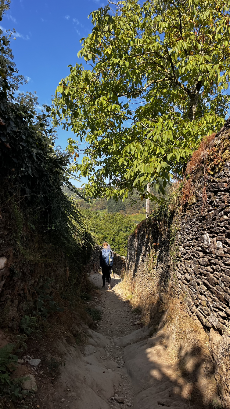 8시쯤 잠시 쉬어가려고 밴치에 앉았는데 웽이 갑자기 울상이다. 배낭을 동키서비스로 보내려고 신청했는데 문제가 생긴 모양이다. 사리아 이후에 작은 마을에만 숙소를 정하다보니 동키가 여의치 않은 것도 같고, 비싸기도 한듯.