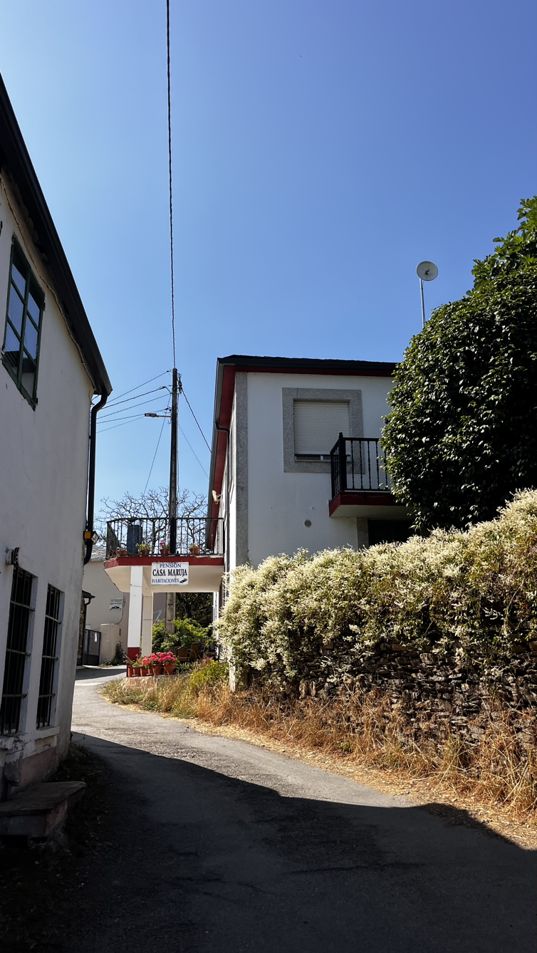 2시 이후에 걸어본 적이 없지만 이젠 날씨도 선선해졌다 싶었는데 웬걸, 오늘따라 늦더위가 기승을 부리는지 뙤악볕 아래를 두시간이상 걸으니 기진맥진에다 물 부족 사태다. 500밀리 생수 한병을 다 마시고도 계속 목이 마르다. 갈증을 참다참다 못해서 겨우 1킬로 남은 지점에서 예약도 하지않은 알베르게에 들어가서 물을 청한다. 주방에서 받아가란다. 대체로 생수는 사마셔 왔는데 이 갈증 앞에선 수돗물이 무슨 대수랴. 반병을 받아서 일단 마시고는 한병을 받아서 인사하고 나온다. 너무 고마운 알베르게다.