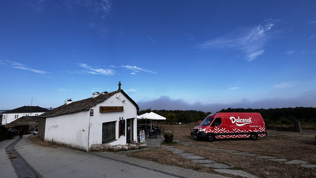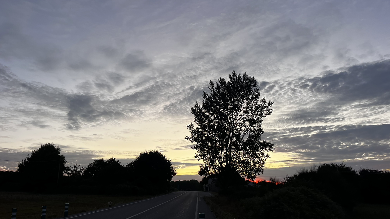 조식이 대체로 7시라 이제껏 숙소에서 먹어본 적이 없는데 이번 숙소는 6시라길래 까미노에서 처음으로 아침이란 걸 먹어보려고 5시반에 일어나서 배낭 다 챙겨놓고 5시 55분쯤 식당으로 갔는데 아무런 인기척이 없다. 6시가 되서야 직원 3명이 식료품 봉지들을 들고 출근한다. 10분을 더 기다려서야 겨우 까페라떼와 토스트를 주문하고 나오자마자 급하게 먹는다.