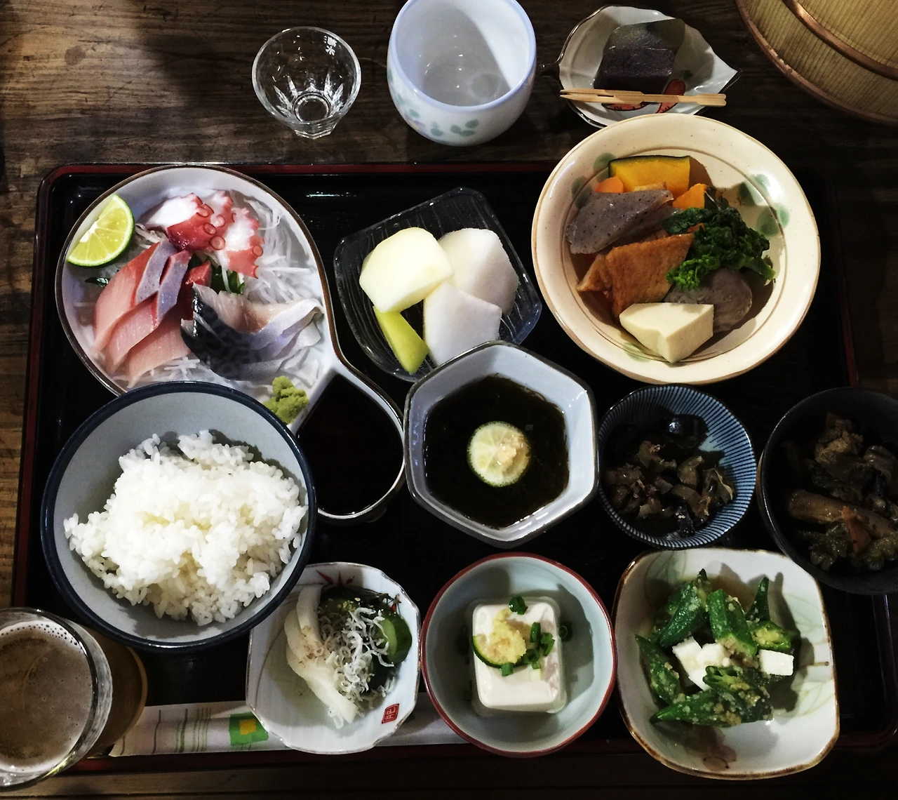 2층 방에서 1층 마루로 내려가니 4인용 앉은뱅이 식탁이 2개, 순례자는 여섯이다. 여자는 나까지 둘. 박선생님과 나와 다른 여자 오헨로상이 한 상을 차지하고 다른 쪽에는 남자 셋이 저녁을 먹는다.
