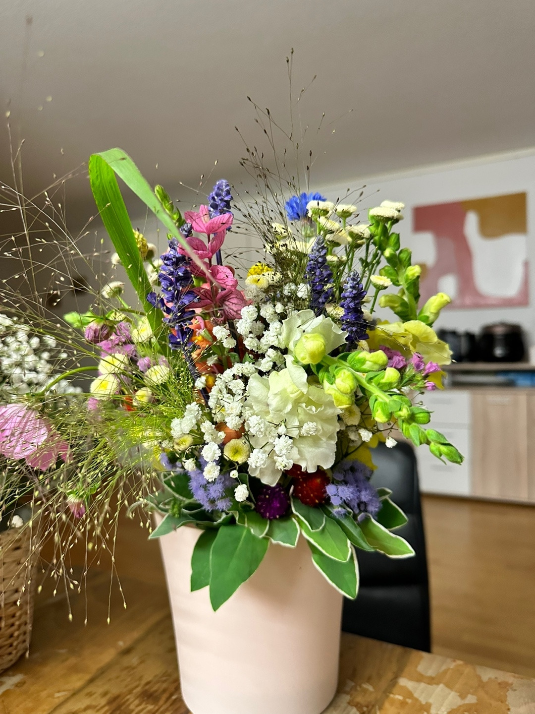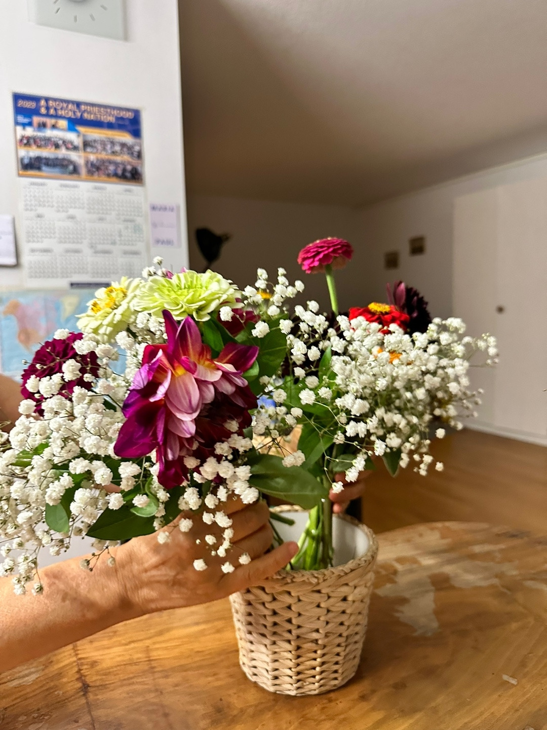 형님(신부의 엄마)은 둘째 딸 마리아에게 가장 잘 어울리는 잔잔한 들꽃들을 골라 바구니 가득 담아 오셨다. 내일까지 시들면 안 되기 때문에 꽃을 미리 준비할 수는 없다.