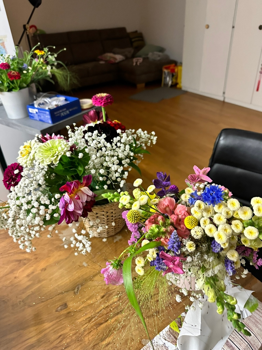 결혼식 전날, 종일 쏘다니며 놀다 들어와 보니 시누댁의 거실과 베란다가 온통 꽃천지다. 여러 개의 물동이와 꽃병에 담긴 꽃들은 바로 내일 결혼식에 쓰일 꽃들이다. 신부의 부케와 신랑의 부토니에, 가족, 주례의 코르사주, 결혼식장(교회)의 탁자와 의자, 만찬장을 장식할 꽃들을 포함해서다.