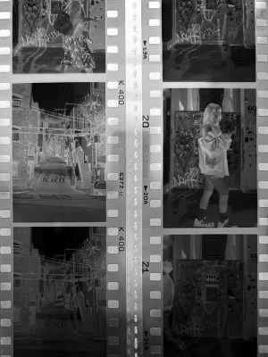 현상과 건조를 마친 따뜻한 필름을 유리면에 부착하고 들여다보는 즐거운 시간.