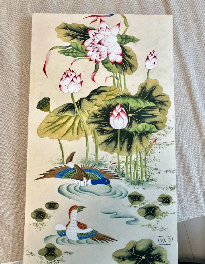 자칭 취미부자답게 새로운 취미를 하나 들였다. 바로 민화 그리기다. 민화를 처음 그려본 것은 7년 전 미국으로 이민 가기를 준비할 때 그림을 하나 그려서 갖고 가고 싶었을 때였다. 어떤 걸 그려야 할까 하다가 로망으로 품고 있던 한국적이고 전통적인 어떤 것으로 집을 장식하고 싶다는 마음에 이끌려 작은 모란도와 오리와 연꽃이 있는 조금 더 큰 그림 두 개를 그린 것이었다. 이때는 그저 큰 생각 없이 색칠공부하듯 그렸던 것 같다. 그리고 생각보다 정말 시간이 오래 걸린다는 것에 놀랐고 오롯이 집중하지 않으면 선이 삐뚤어지기 때문에 딴 잡생각을 하기 어려웠다.