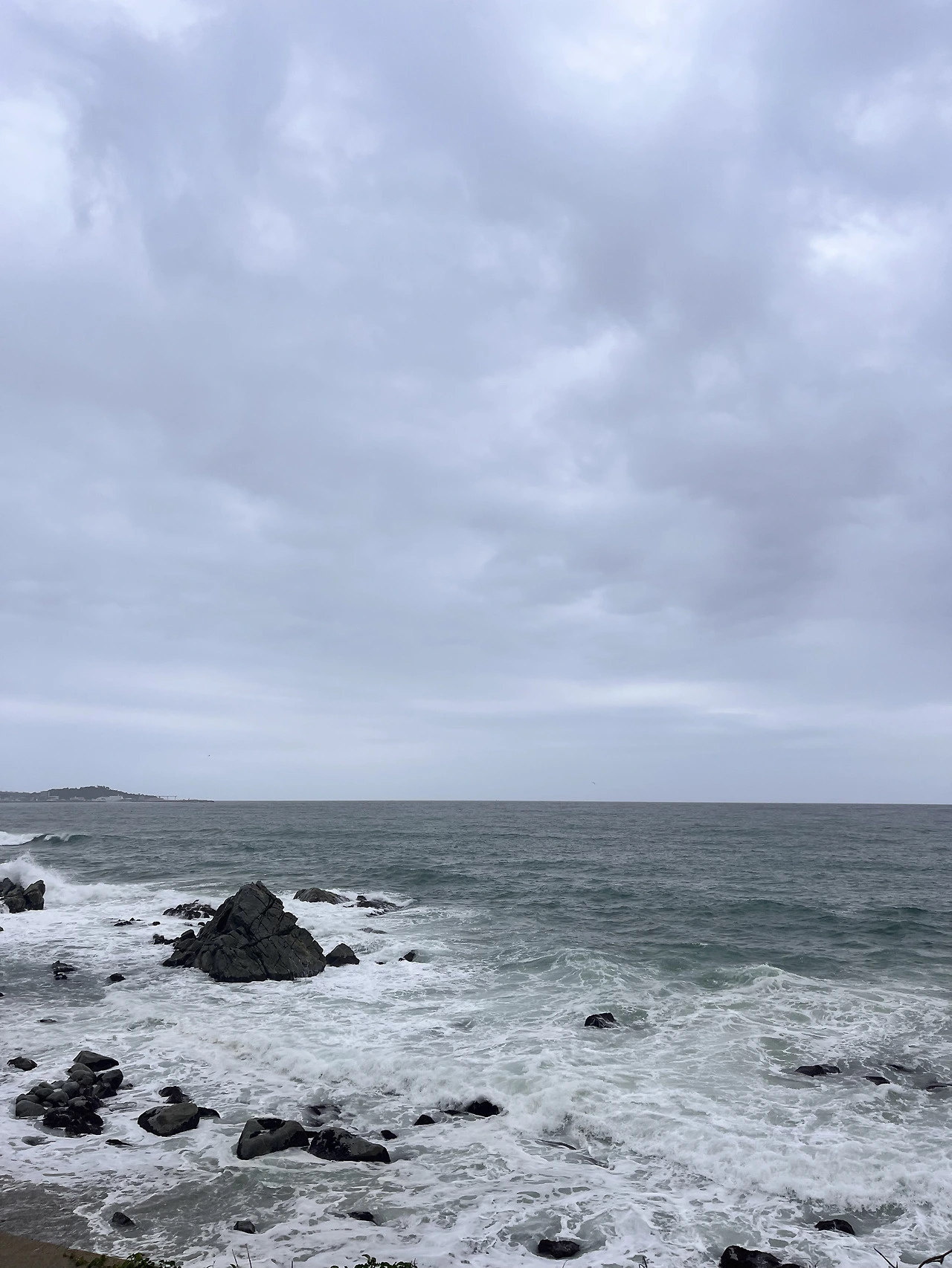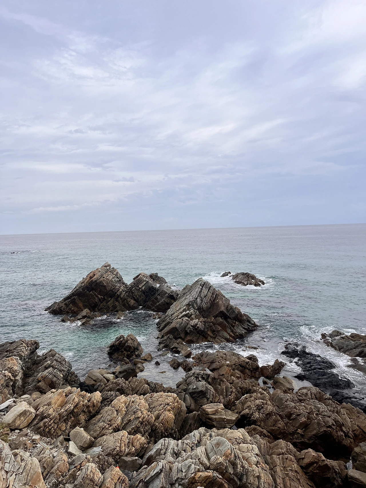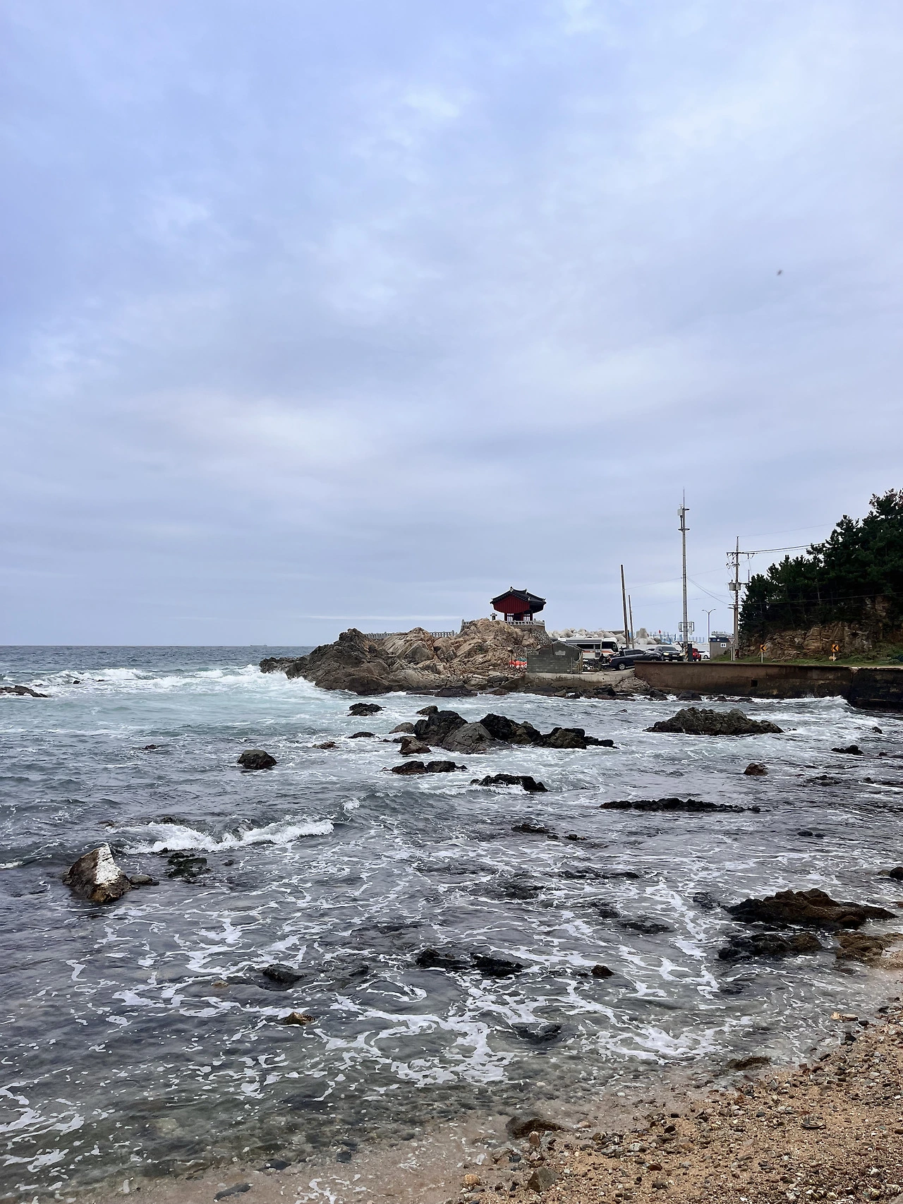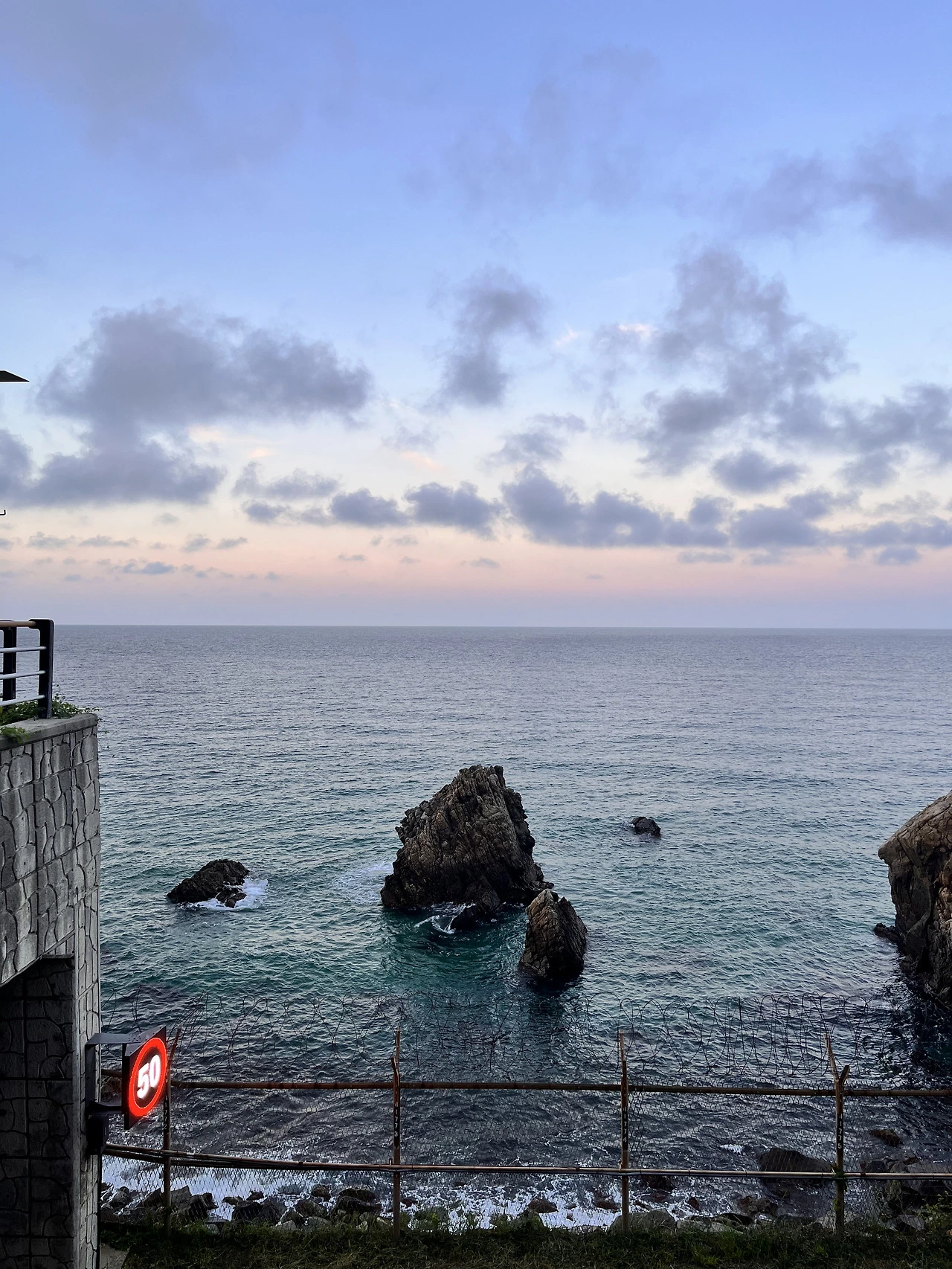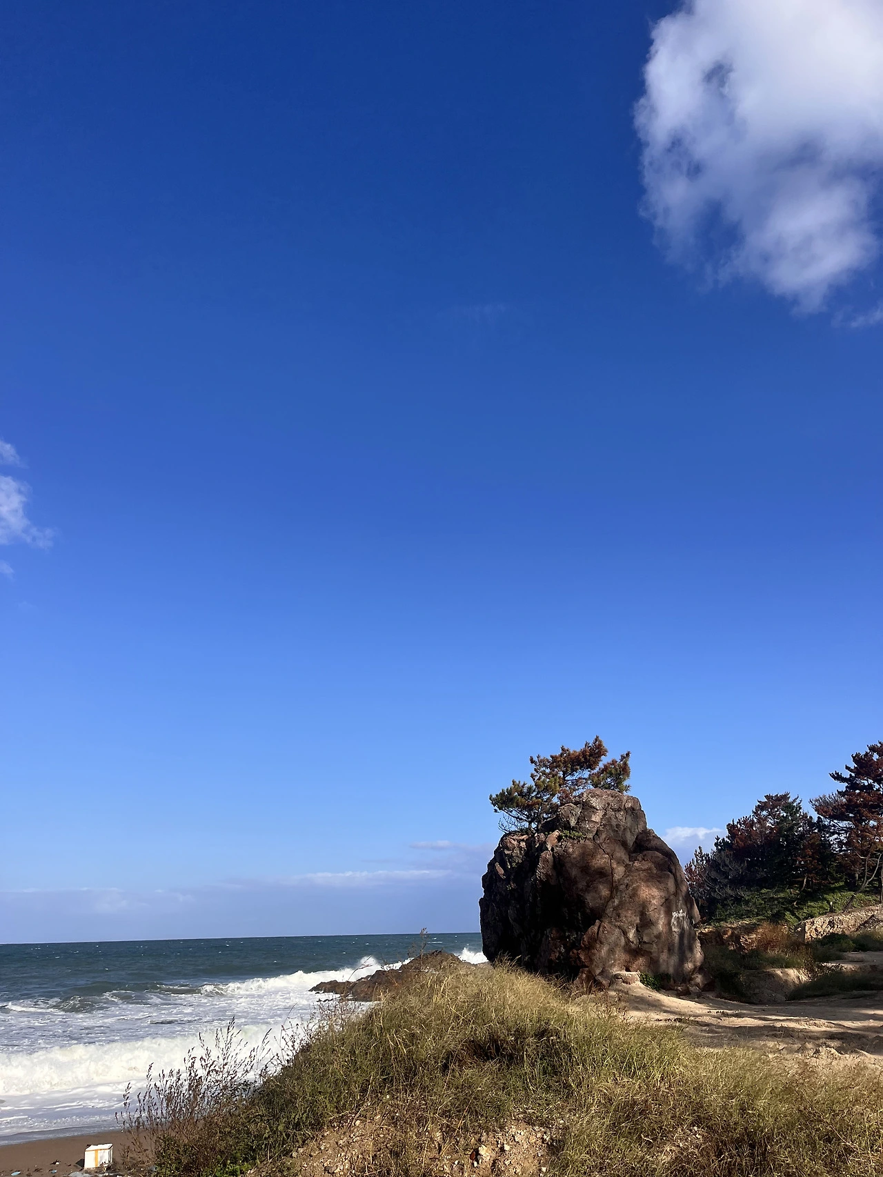 이렇게 바위가 가득한 바다를 보니깐 정말 아름다웠다. 푸른 바다에서 일렁이는 파도는 바위에 부딪힐 것을 알고도 바위를 향했다.