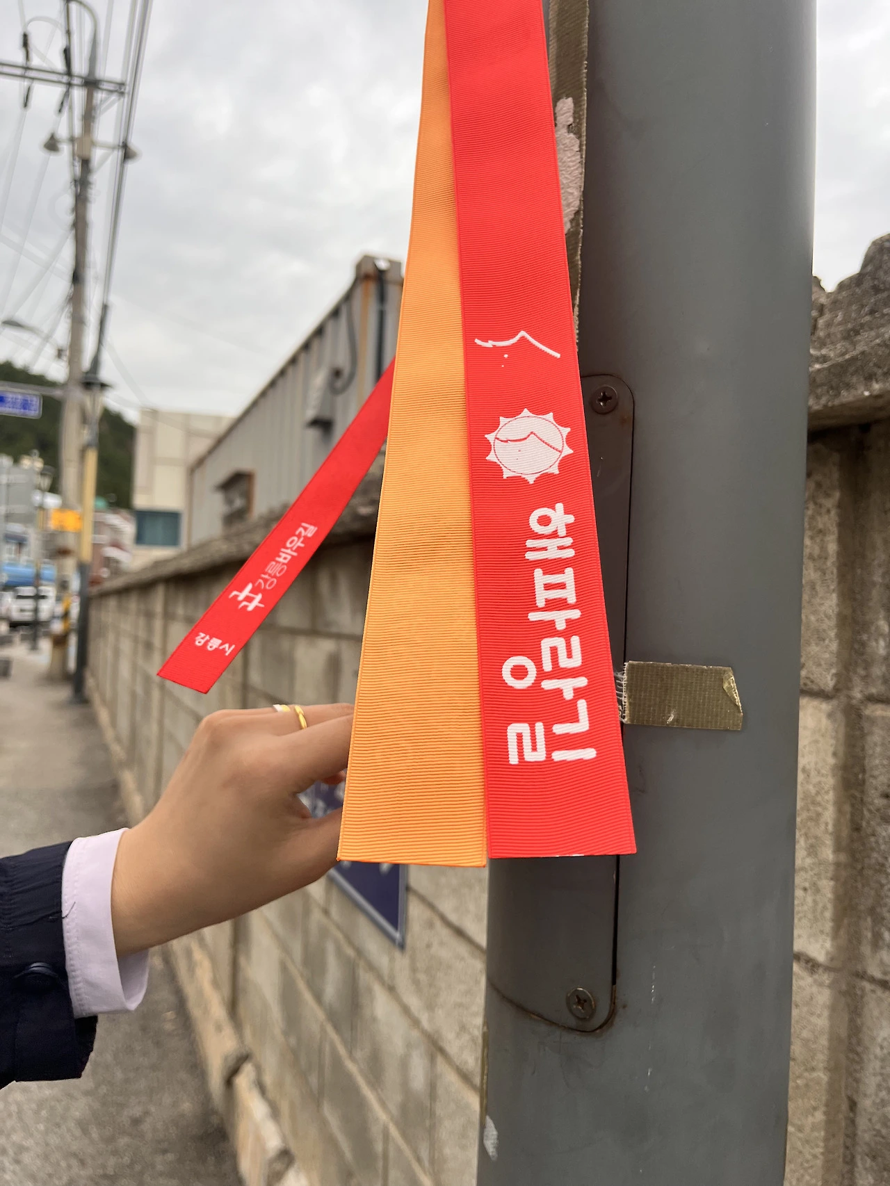 그러곤 각자의 길을 걷다가 나는 가방에 달아놓은 태극기를 잃어버려 거꾸로 길을 걸어가던 중