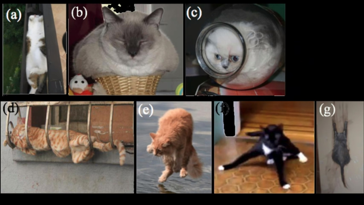 이 외에도 마크 앙투안은 모세관을 따라붙어있는 고양이, 고양이 친화도가 낮은 바구니에 들어있어서 강한 결합각을 보이는 고양이, 표면장력의 일환으로 병에서 흘러나오지 않는 고양이, 거친 바닥에 놓여있어 울퉁불퉁한 고양이, 그리고 물 표면과 친하지 않음(강한 소수성)을 보여주는 고양이, 미끌미끌한 표면에서 흐르는 고양이, 그리고 수직면에 부착된 고양이 등, 고양이의 다양한 ‘액체’ 형태를 규명했습니다. 논문을 뜯어보면 볼수록 멋지고 점점 더 변태 같아지지만, 난이도가 올라가니 굳이 더 적지는 않겠습니다.