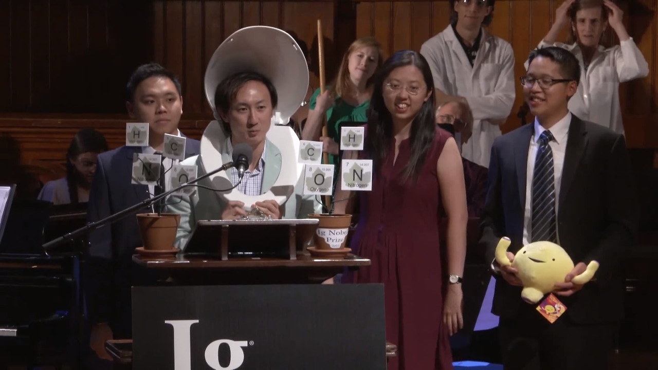 ….???? 혼란하다 혼란해. 이 장면은 과학자가 시상식에서 수상소감을 말하고 있는 장면입니다. 과연 이 과학자는 뭘로 상을 받았길래 머리에 변기 뚜껑을 쓰고 있는 걸까요?