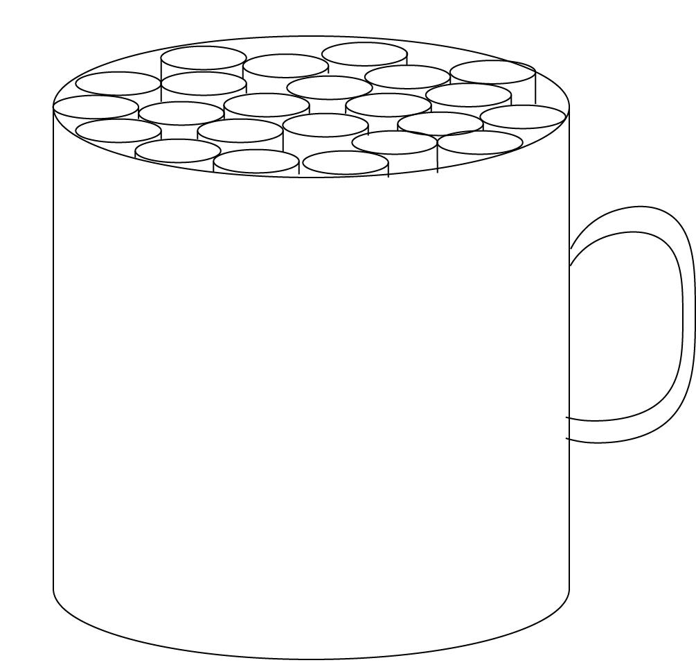 그래서 한지원은 먼저 ‘다른 요소가 있는가'를 실험을 통해 간단히 증명해 보았습니다. 양이 유일한 문제였다면, 다른 조건이 바뀌어도 커피는 똑같이 넘칠 겁니다. 예를 들어 같은 양의 커피를 와인잔에 담든 머그잔에 담든 상관 없이 넘쳐야 할 것입니다.