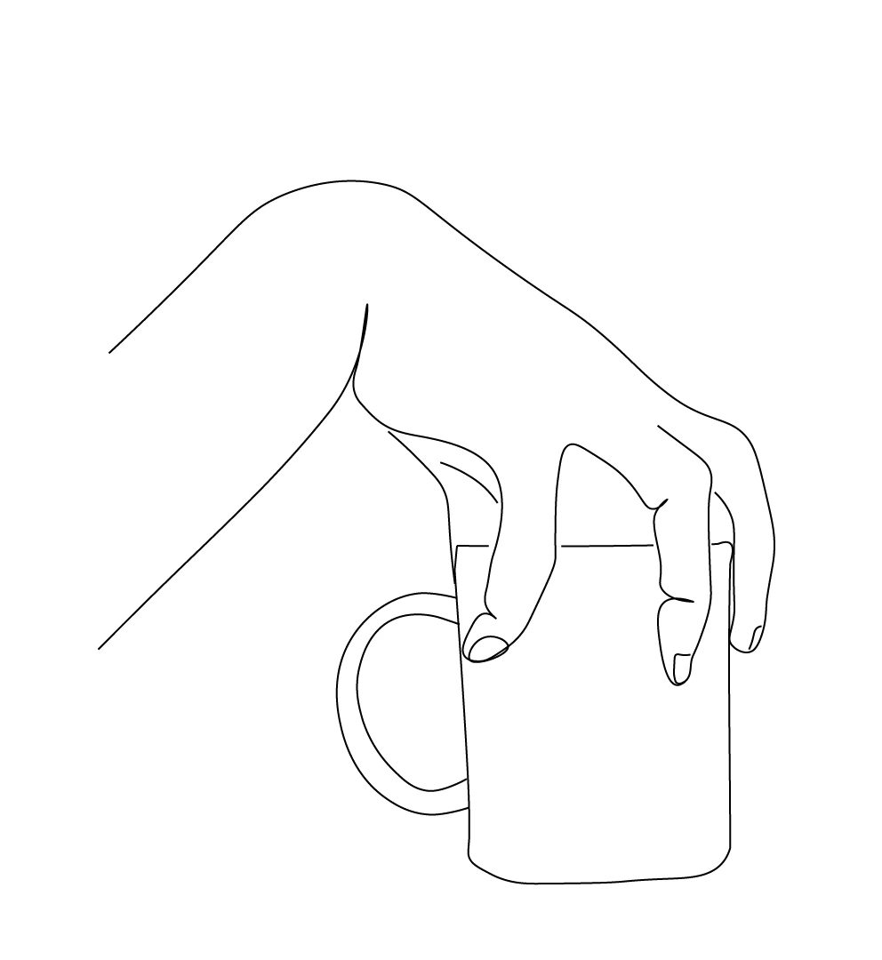 두 번째, 커피잔 옆이 아니라 위를 잡는 방법이 있습니다. 흔들리는 축을 바꿔 컵이 마치 이중 진자처럼 흔들리게 하는 거지요. 그는 이 방법을 ‘발톱자세’라고 불렀습니다.