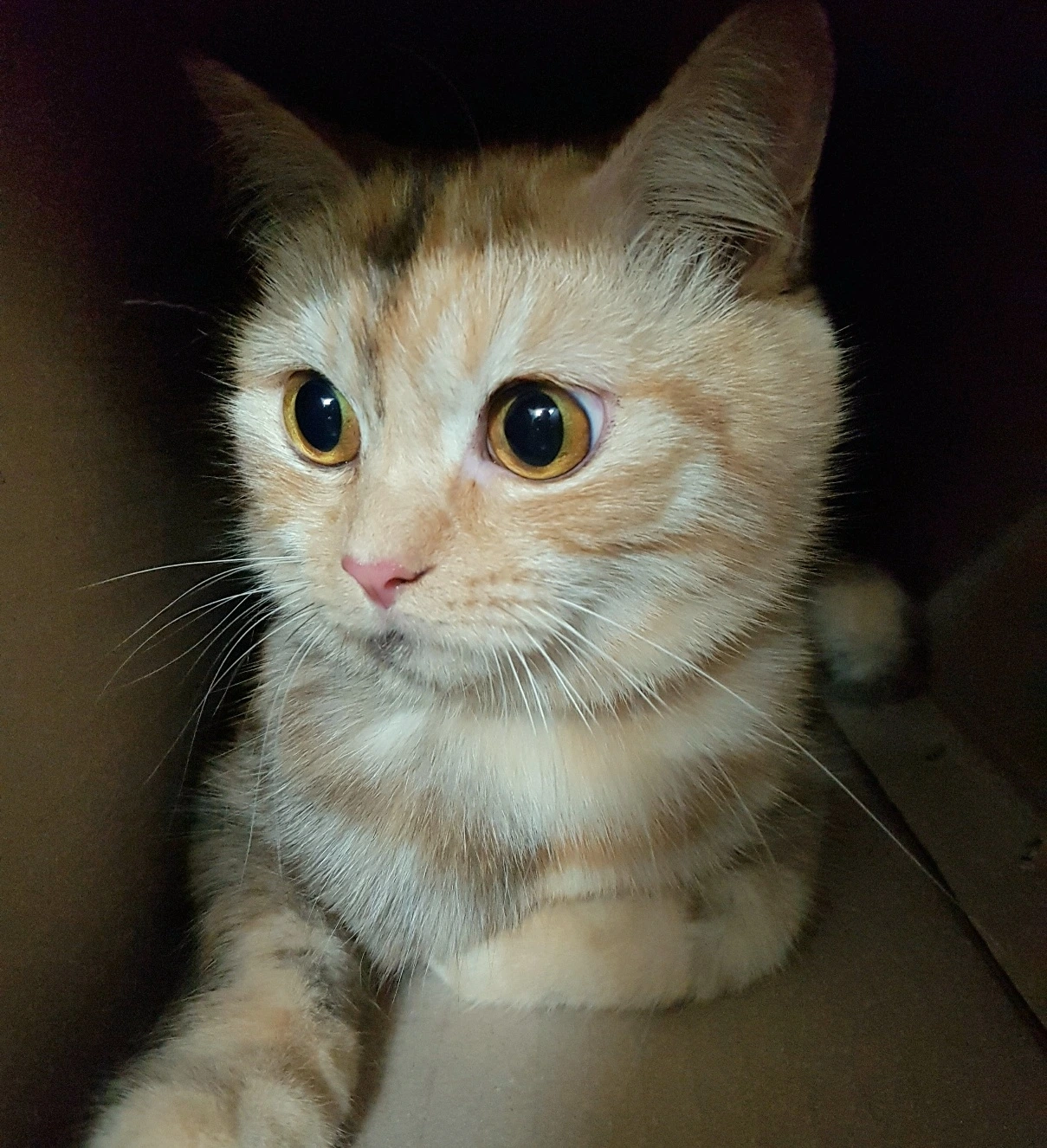 억울해서 매력적인 눈매를 가진 보리. 제 이름에 딱 맞는 색깔을 가진 털이 보송보송 사랑스럽다. 어떻게 이런 색깔옷을 입고 나왔을까? 깨끗한 아이보리 바탕에 연한 베이지 태비, 그리고 하얀색 양말. 색상은 흐리지만 웅크린 뒷모습은 영락없는 땅콩이다. 거기에 유독 파랗게 보이는 눈동자가 아름다움의 정점을 찍는다.