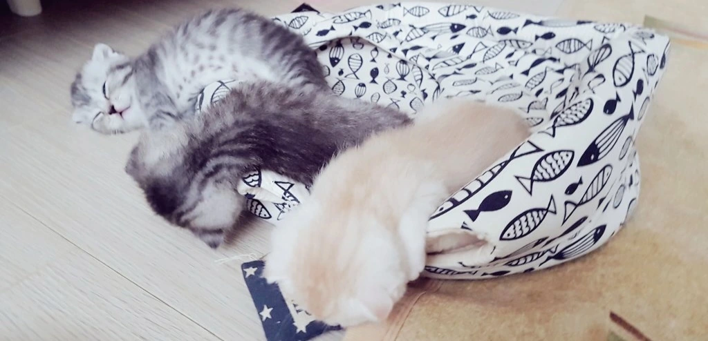 짙은 회색빛 태비가 선명한 호두와 율무는 아기 호랑이같다. 둘은 아직 잘 구별이 되지 않는다. 눈 크기가 살짝 차이 날 뿐이다. 아기들의 성장 속도가 무섭다. 전날에는 앞발이 분명 내 둘째손가락만 했는데 다음 날에는 엄지손가락만큼 커져 있다. 엄마 젖을 충분히 먹어서 그런지, 말 그대로 폭풍 성장이다. 조금만 천천히 자라주었으면 좋겠다.