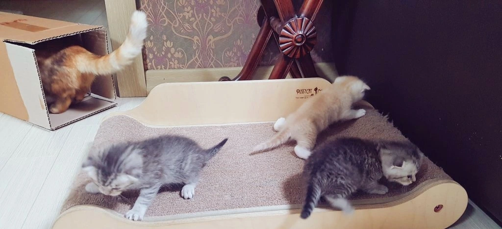 그로부터 며칠이 지나자 세 녀석이 동시다발적으로 움직이기 시작했다. 제각기 다른 방향으로 꼬물거리는 아이들을 보는 우리는 행복의 절정 상태인데, 쿠키는 멘탈이 붕괴된 모양이다. 아기들이 어디 숨었나 살피고, 누굴 먼저 쫓아가서 집으로 데려갈지 몰라 쩔쩔매는 모습이 안쓰러우면서 귀여워 못견디겠다.