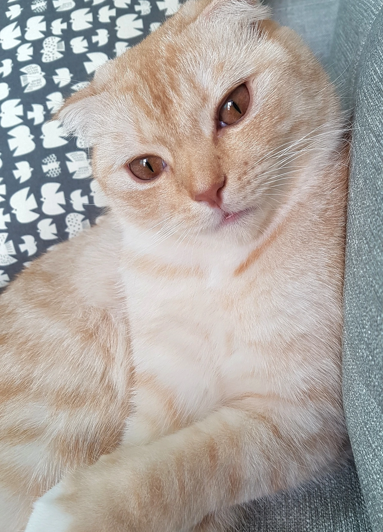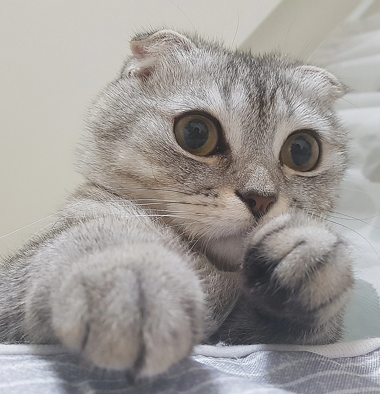 쿠키는 기분에 따라 성격도 왔다 갔다, 표정도 가지가지다. 어떨 땐 게으르고 못된 물개 같다가 놀라서 눈을 동그랗게 뜨면 부엉이처럼 보이기도 한다. 왜 제때 알아서 긁어주지 않았냐고 험상궂은 표정을 하고 어슬렁거리며 나에게로 직진할 때, 그 당당함이 못 견디게 좋다. 이불속으로 들어가고 싶으니 공간을 만들라고 내 팔을 툭툭 치는 그 자신감, 가슴 위에 올려놓으면 찰떡처럼 들러붙어 골골대는 쿠키의 펑퍼짐한 무게감도 좋다.
