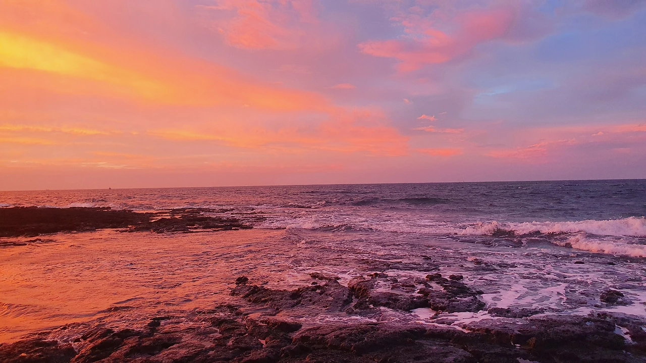 날씨는 예측할 수 없게 변화무쌍했지만 여행 내내 비는 밤에만 내렸고, 폭풍 같던 바람은 어느새 잠잠해지고 햇빛이 쏟아지기를 반복했다. 그러다 바닷가 식당에 자리를 잡은 저녁 식사 시간, 살짝 비를 뿌리려다 그친 하늘색이 심상치가 않아 밥을 먹다 말고 몇몇이 뛰쳐나갔다. 바다가 부서지는 검은 바윗돌 위에 서서 생애 최고로 짙은 금빛 찬란한 노을을 마주했다.