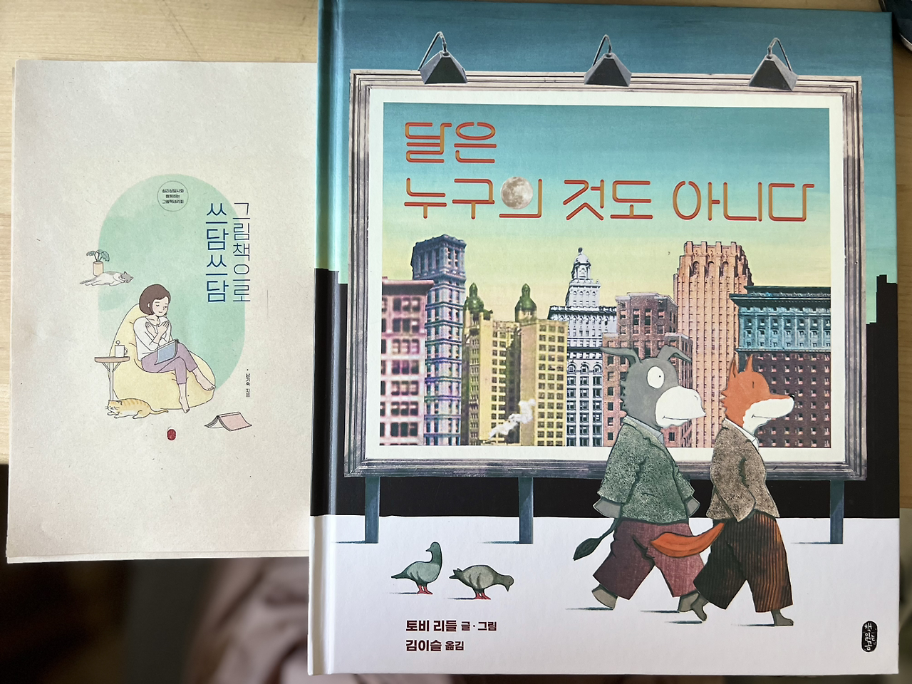 달은 지구 중력에만 의존한 채 존재하지 않는다. 달 또한 자신의 중력을 지구에 미치며 존재한다. 그림책 <<달은 누구의 것도 아니다>>에서는 달 이야기가 한 번도 나오지 않고 동명의 영화를 보는 여우와 험프리가 나온다.