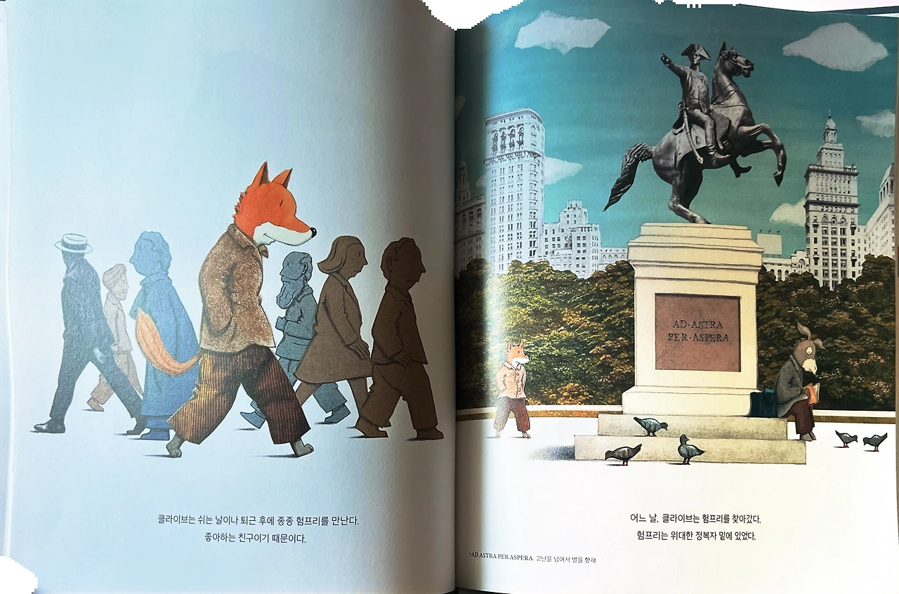 여우는 자신의 야생 본능을 모두 버리고 빠르고 성공적으로 도시 생활에 적응한 인물로 나온다. 혼자 잘 먹고 잘 사는 여우는 그런데 어쩐지 외로워 보인다. 험프리는 도시 생활에 전혀 적응하지 못해 우울한 당나귀이다. 험프리는 우연히 여우를 만나 친구가 되고 도시 생활을 누리게 된다.